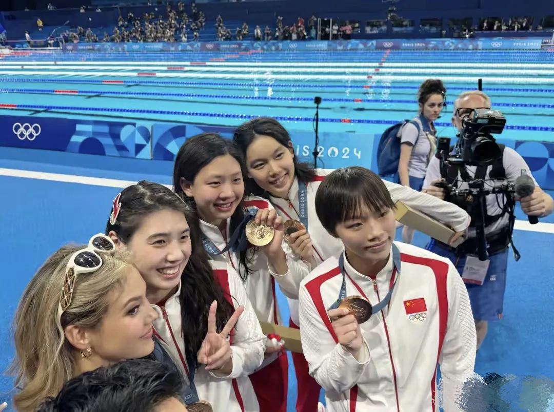 谷爱凌不愧为名媛,前两天和全红婵抱抱,哄的全妹开心的像个小宝宝。昨天谷爱凌来到了游泳赛场,和潘展乐、张雨霏开心合影,奥运会的高流量都被谷爱凌占到了。