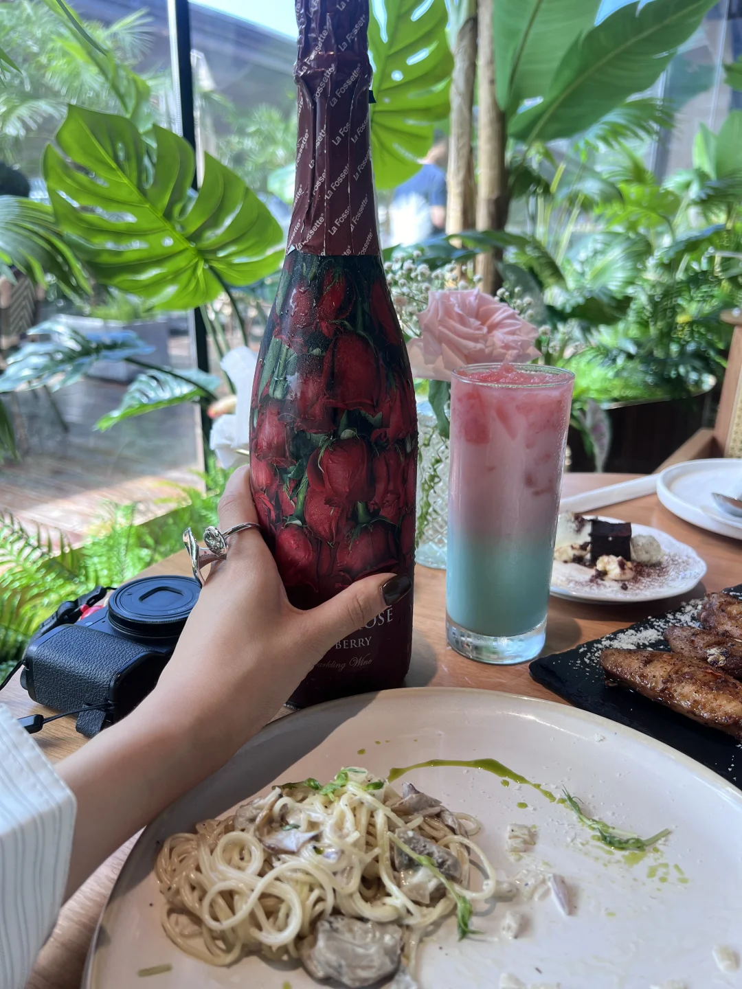 周末约上好久没见的老友来金融岛小聚! 来了一家金融岛新开的餐厅🍴 下午茶有餐食,我就顺便带上了La fossette家的小花束红树莓起泡酒!(上次没冷藏,这次终于提前一晚放冰箱了!)很喜欢喝进嘴浓郁的树莓和带有气泡🫧的清爽, 度数也才7度,讲真气泡🫧酒尊滴很适合夏天!🍾 下午和老友一起聊聊八卦,聊聊最近生活! 蛮惬意的一个周末时光被浪费完毕! 📝温馨提醒: 1⃣️姐妹们记得理性饮酒🍸 2⃣️酒后勿开车🚗🚫 3⃣️🔞未成年小朋友也勿饮酒❌