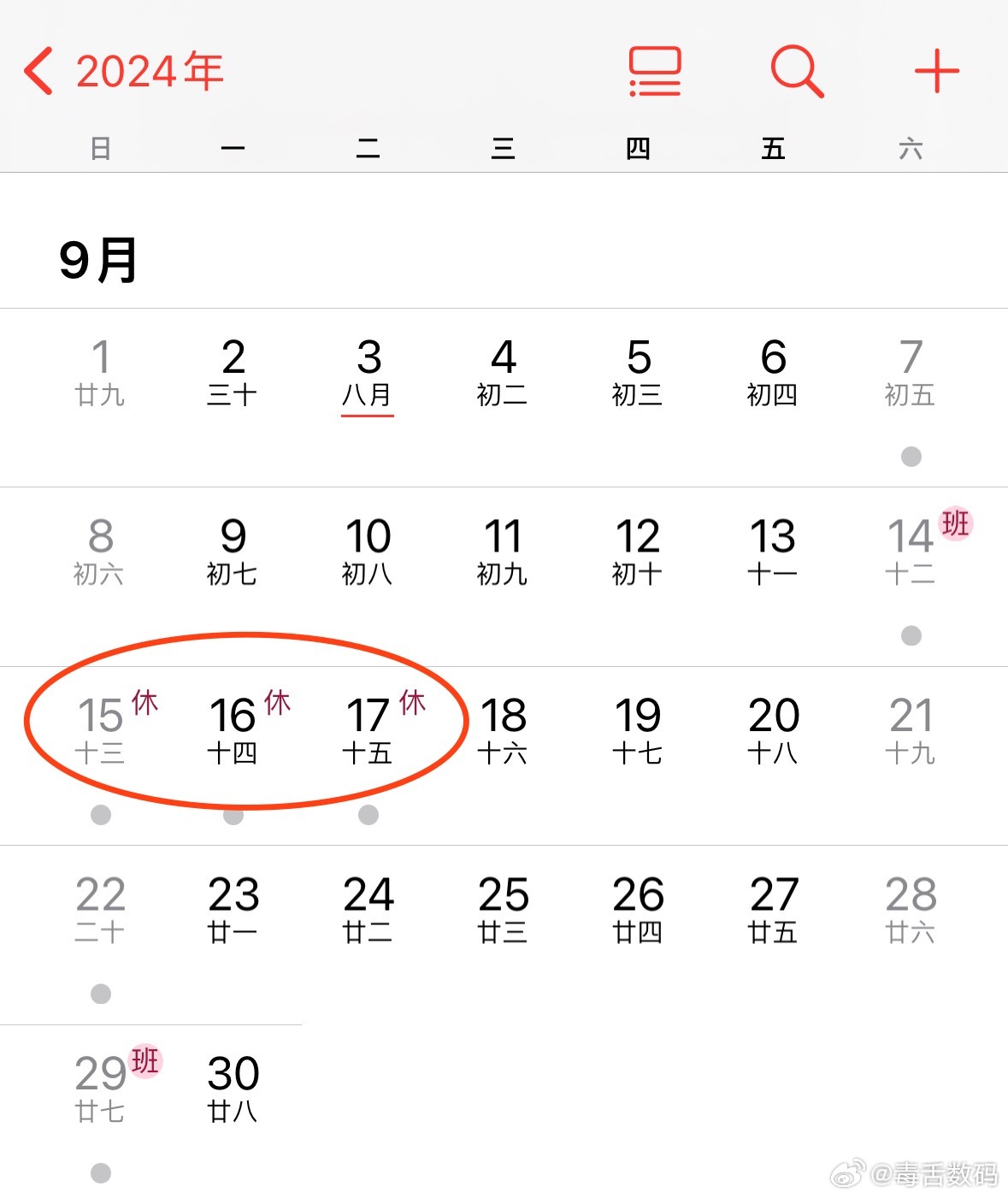 2.调休那就是中秋前一周上6天,连休3天~[思考]
