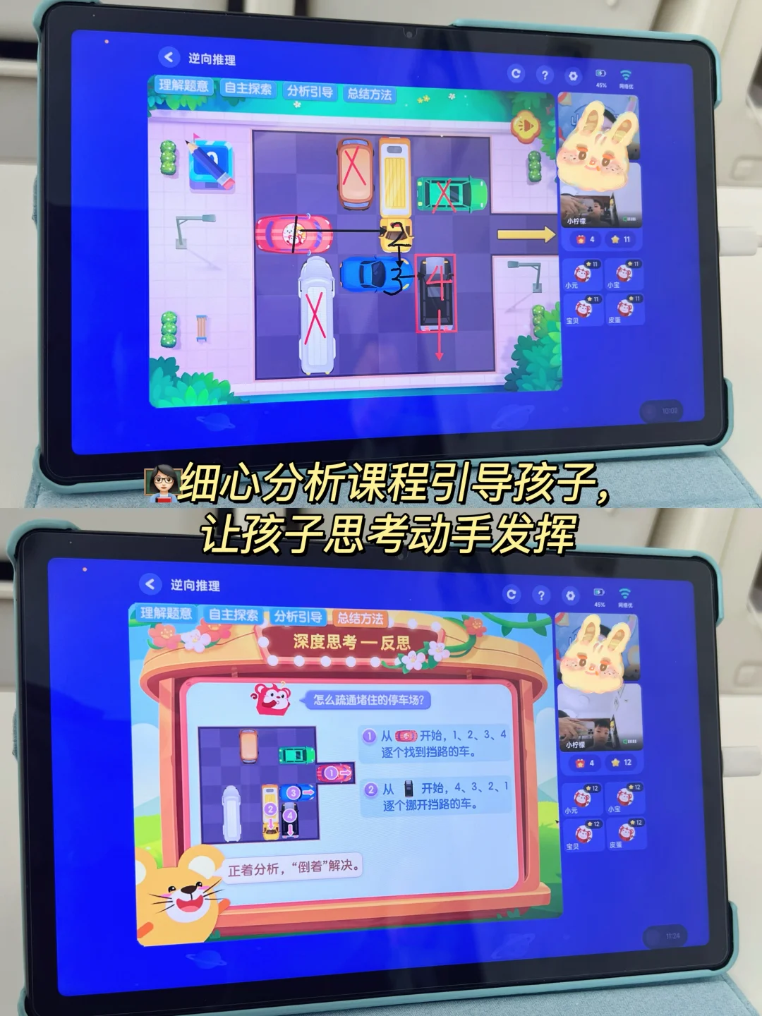 火花思维这点做的就特别好,课程采取动画闯关趣味性强,围绕空间、图形、运算、应用、数感五大方向,知识从简单到复杂,既不会挫伤孩子积极性,又稳扎稳打一步一步提升,我家哥哥越学越有动力!💪他跟我说做题就像打怪升级,主人公遇到困难➡触发任务➡引出问题,他急得不行想帮忙,就要答对任务内设置的问题,这大大激发了他自主思考的热情。 每完成一道题就很有成就感😋