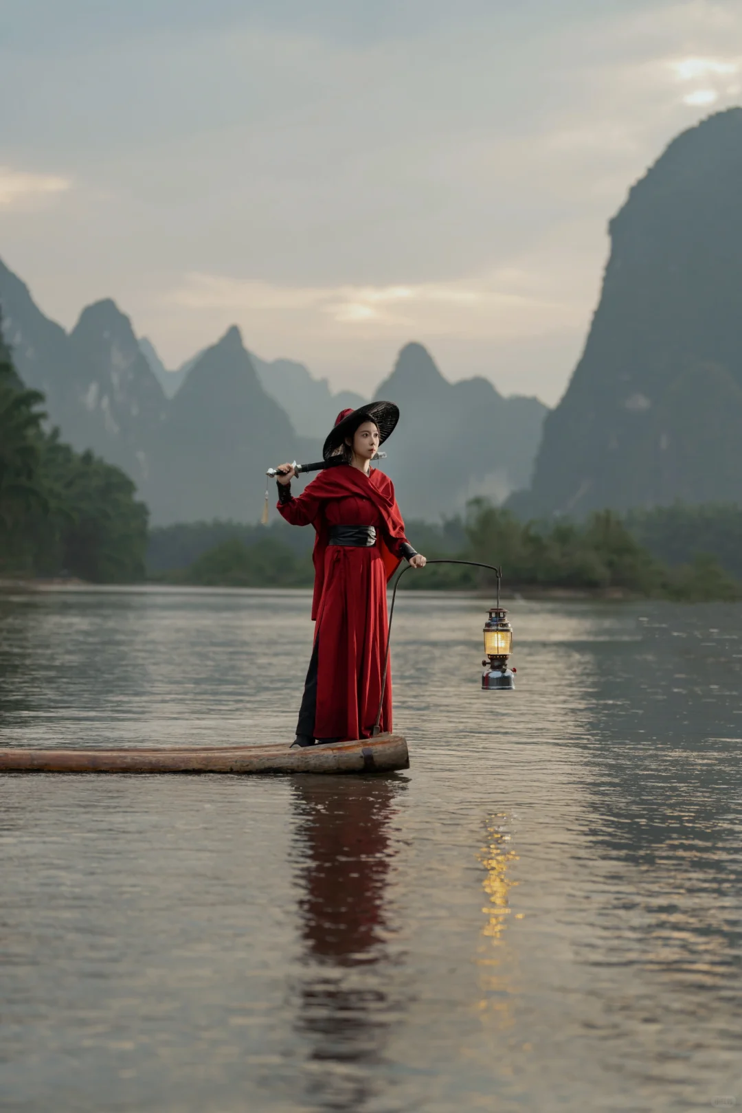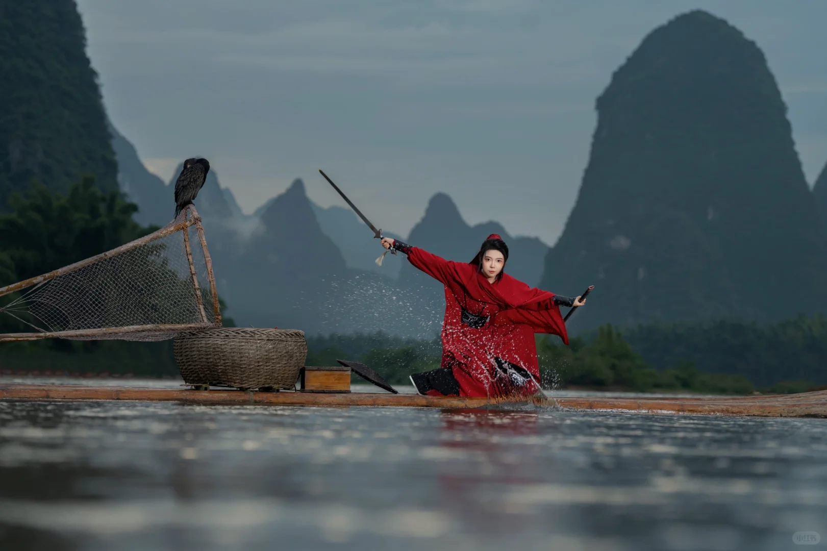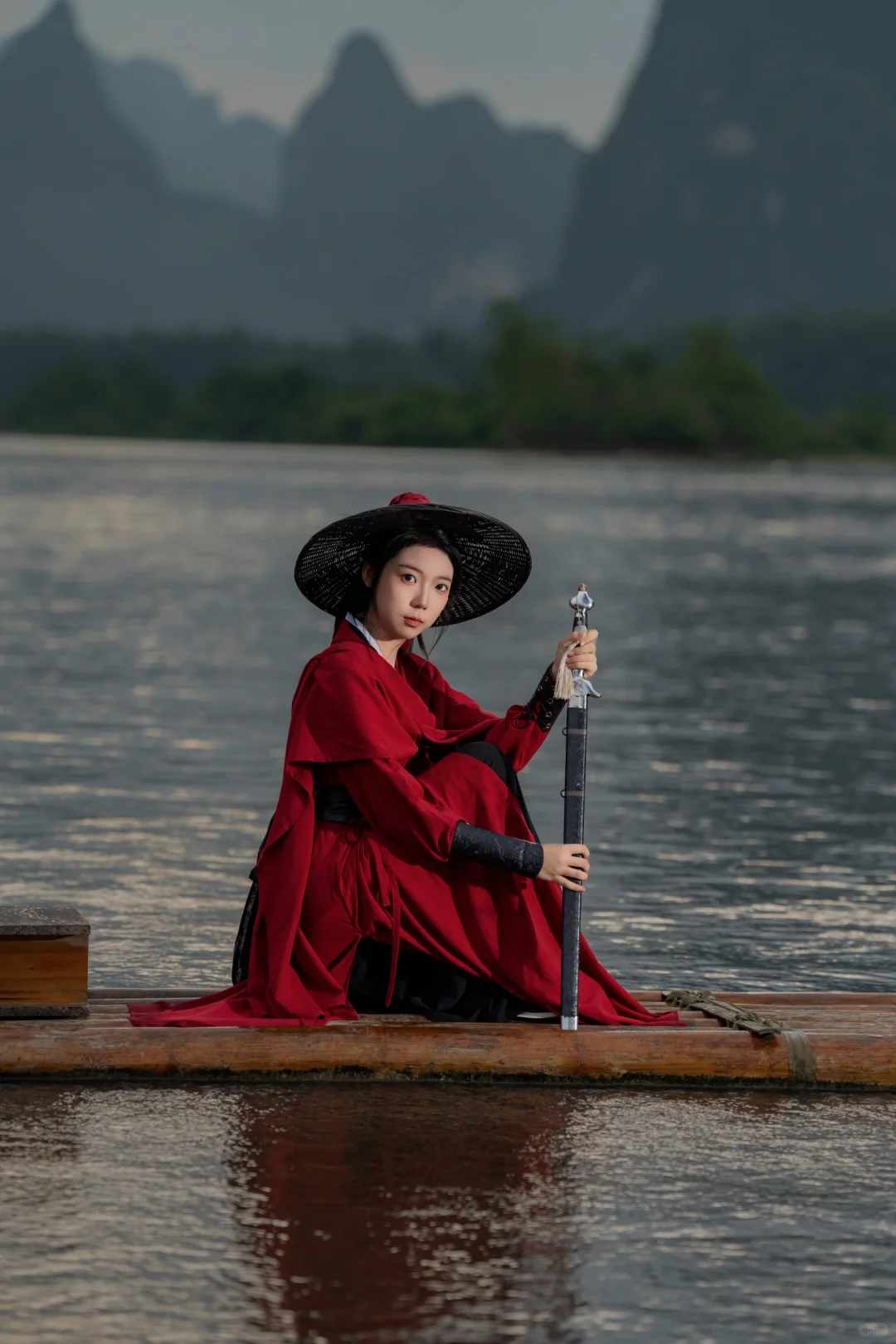 武侠梦照进现实?在漓江当一回女侠,这创意挺剑走偏锋的嘛,照片里的江湖味儿咋样呢?