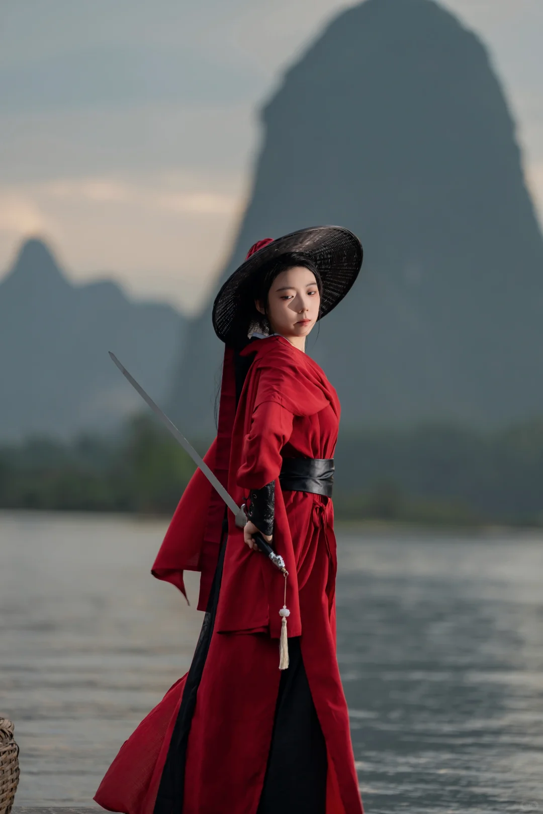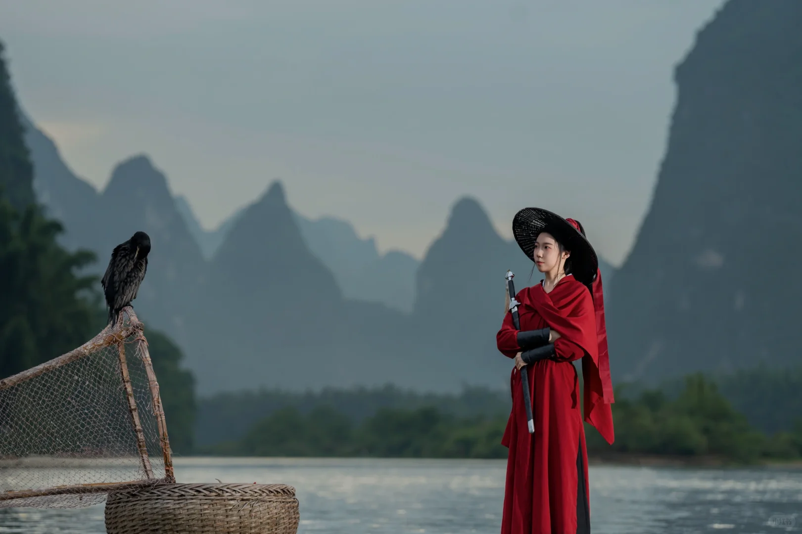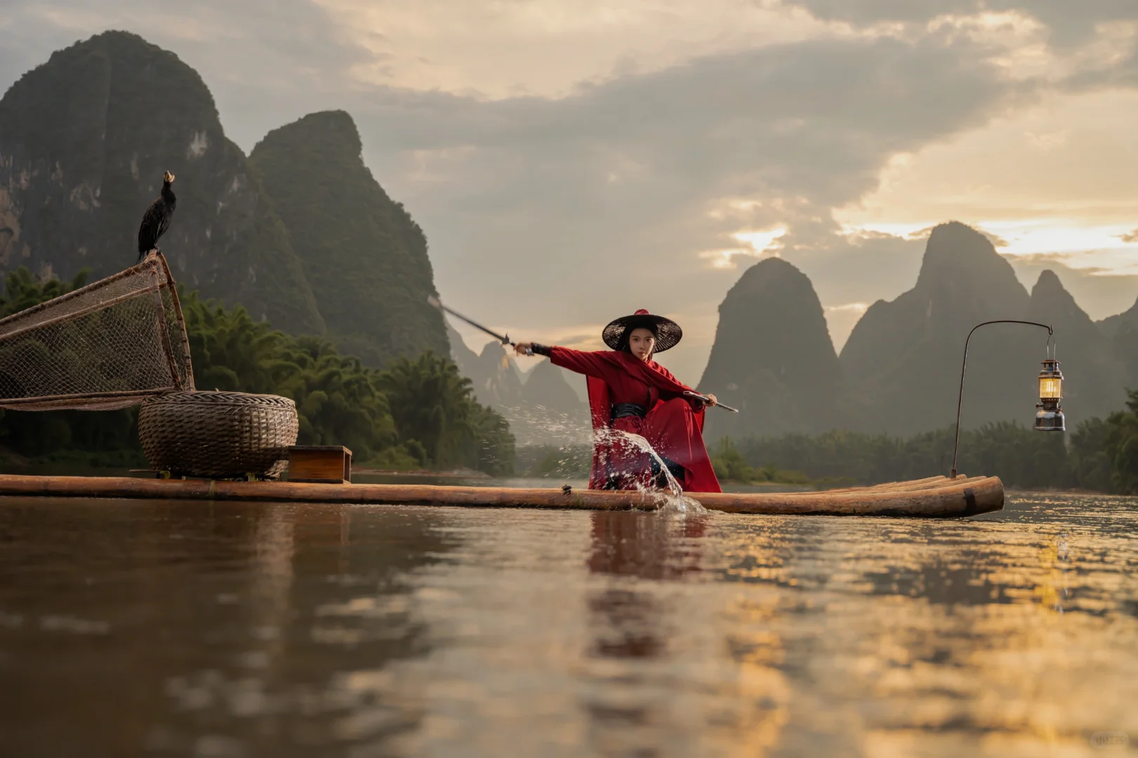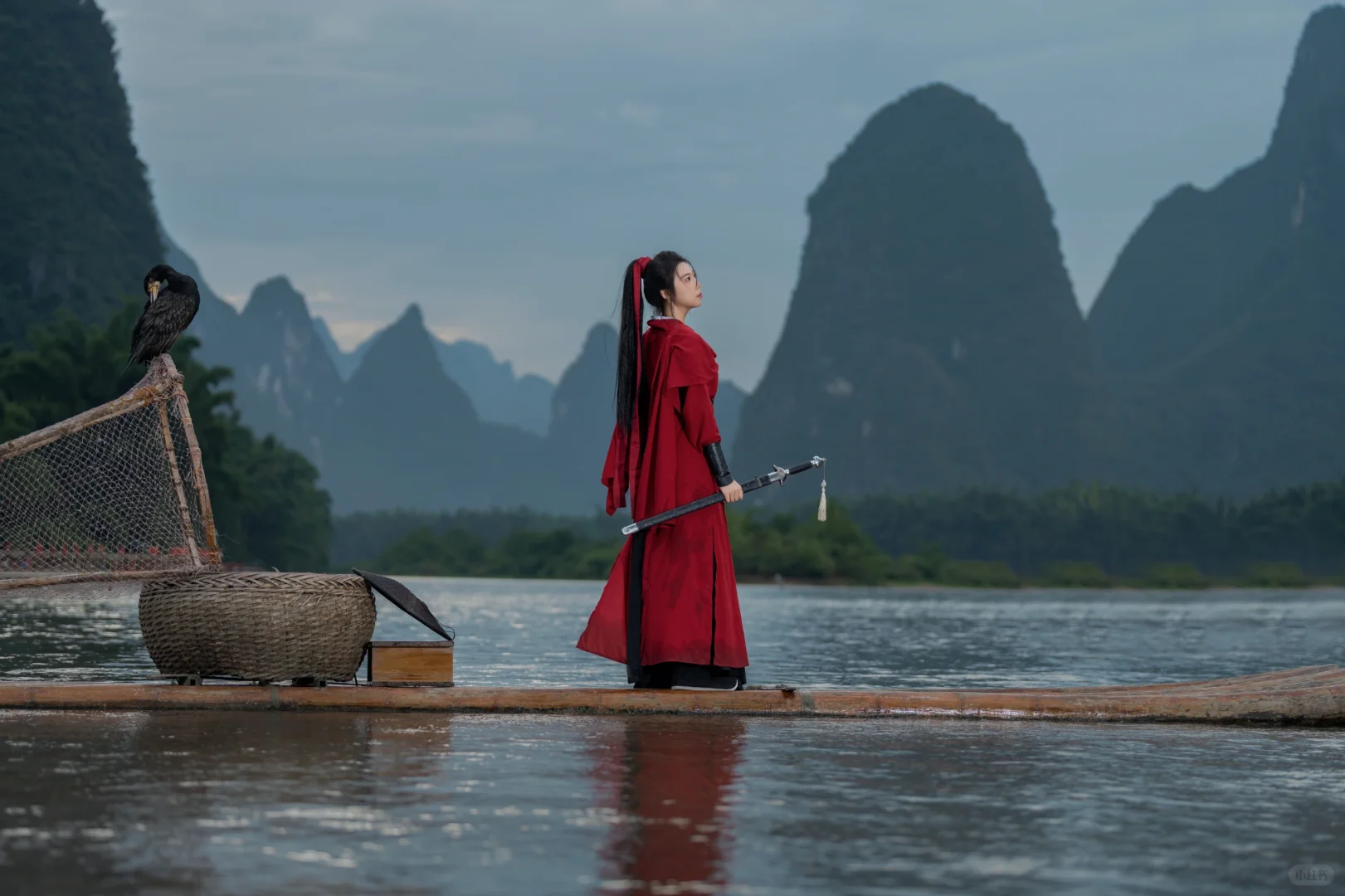 武侠梦照进现实?在漓江当一回女侠,这创意挺剑走偏锋的嘛,照片里的江湖味儿咋样呢?