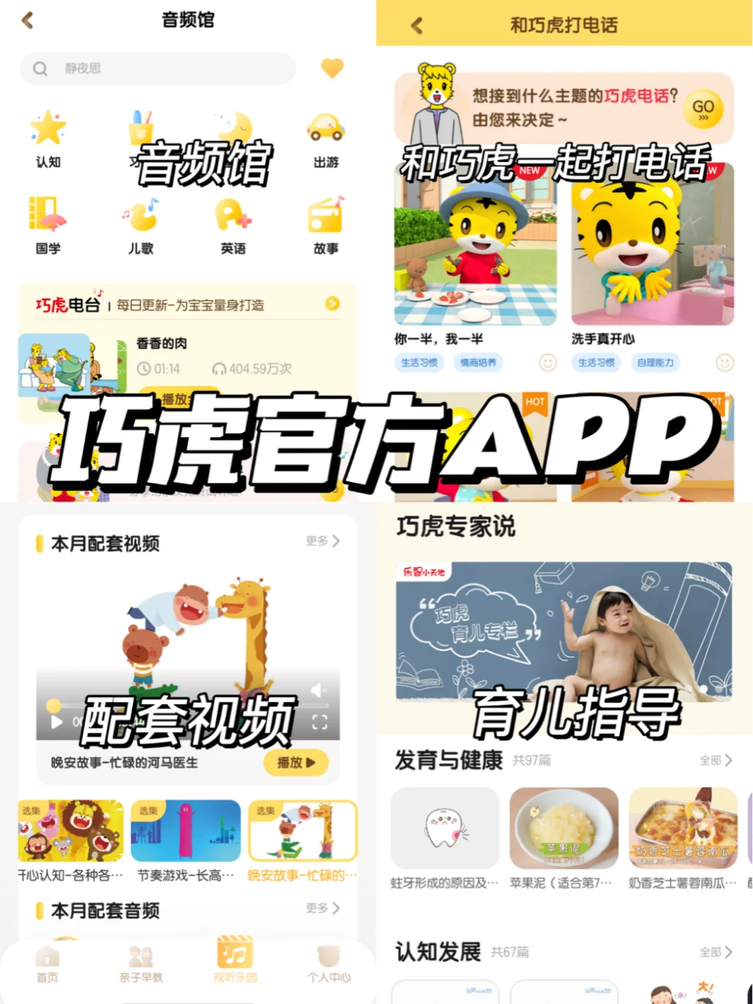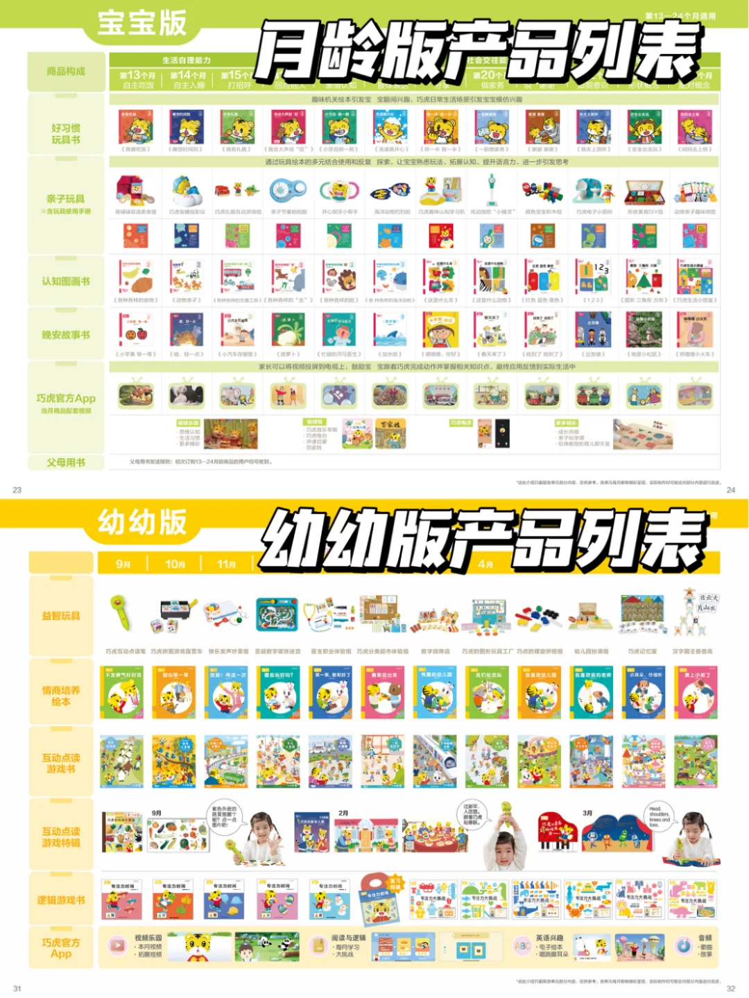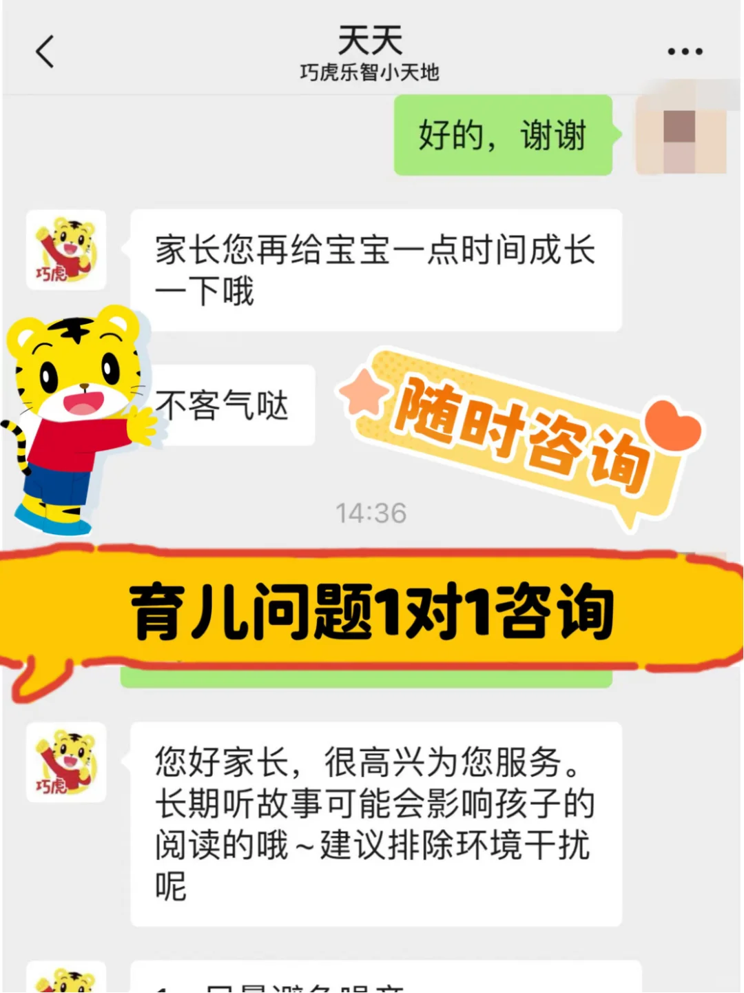 二是因为巧虎是比较专业的,它会根据孩子不同阶段发展特点制定不同早教方案,每个月都会寄一个套装,套装里有玩具、绘本,还有线上1000+关于早教的音视频。👏🏻👏🏻
