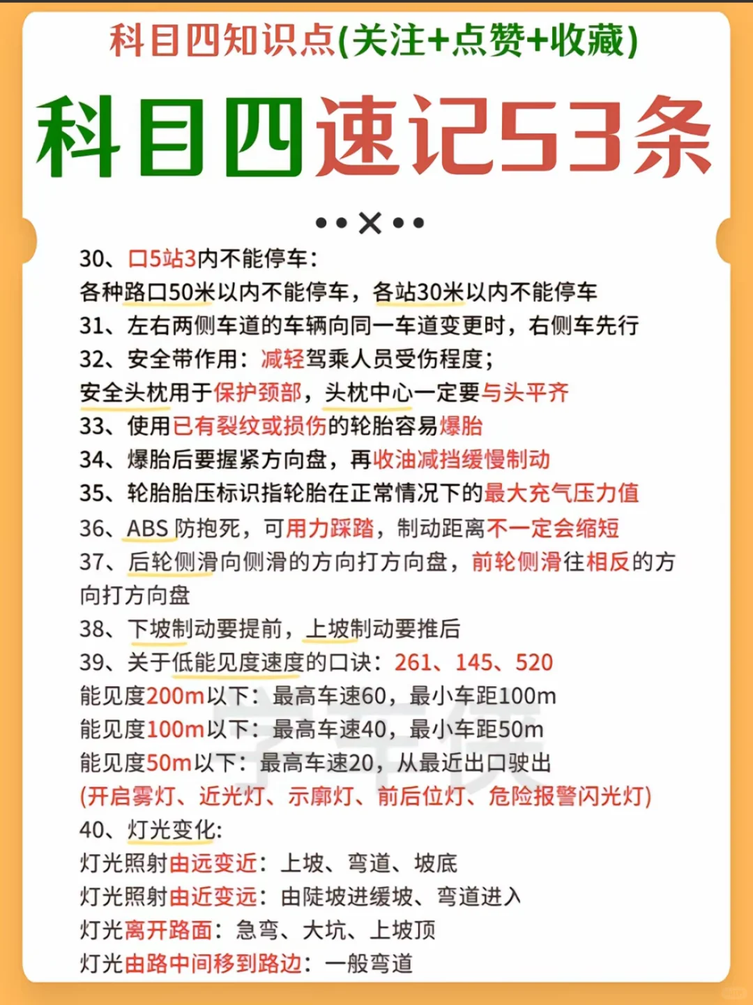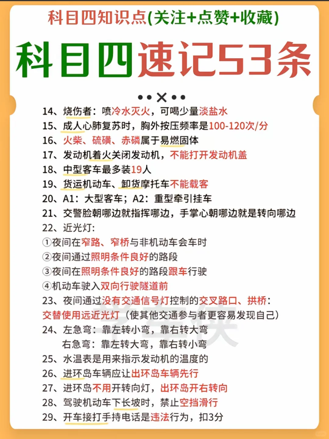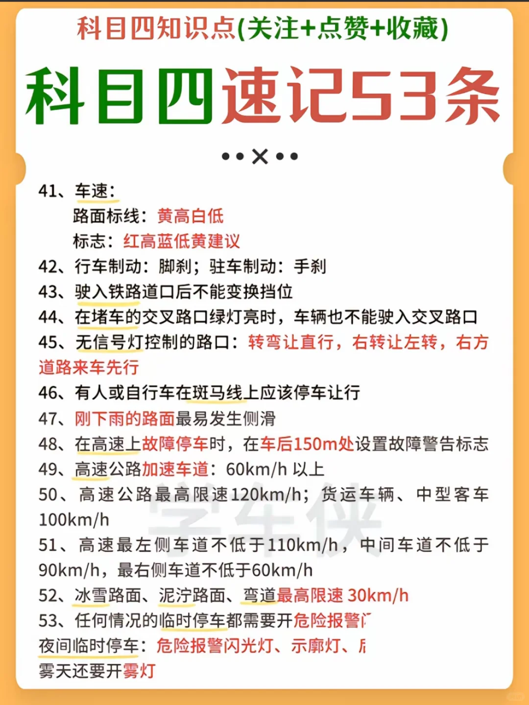 9、下坡路制动失效后:①可迅速逐级或越一级减挡,不可越二级;②或立即寻找并冲入紧急避险车道;③用车身靠向路旁的岩石或树木碰擦;④抢挂低速挡