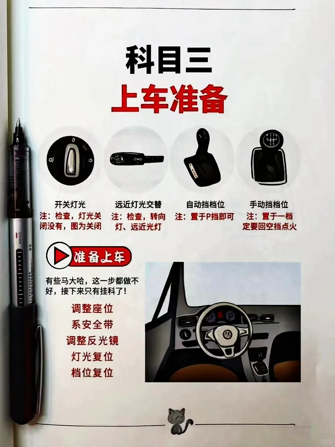 科目二考试全流程 上车细节 1、上车关好车门,开始检查仪表盘,指针1代...