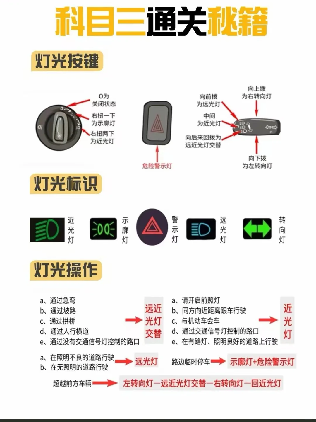 科目三通关秘籍 绕车一周 涮身份证、涮脸验证 右后按钮 考诚等 寮菲学车 左前按钮 1、第一次上车:关门+调整座位镜子+检查灯光 2、跟考官确认准备好,听完指令:下车关门+逆时针绕车一圈+按顺序按四个点 3、第二次上车:关门+系安全带+准备灯光模拟