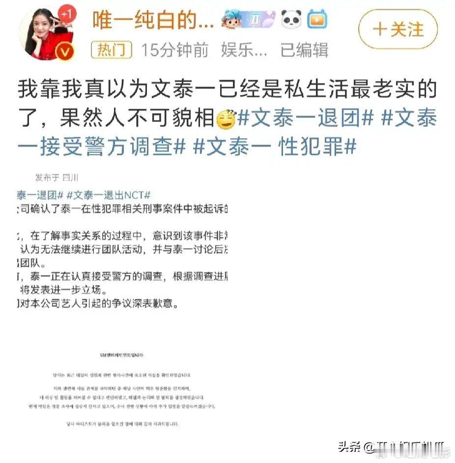 #唉呀,这是大瓜,[捂脸][捂脸][捂脸][捂脸]文泰一性犯罪,太忽然了,看着挺阳光,实诚的一个人,却干不可告人事 向韩国的刘胜利一样,要严惩#文泰一接受警方调查#