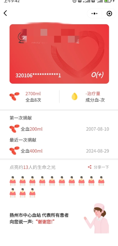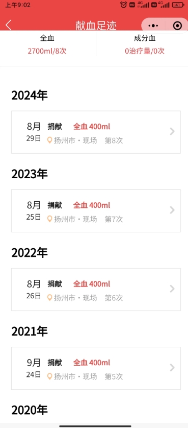 反正我还是会继续献血,今天又献了400ml, 我献血,我光荣,已献血8次,累计2700ml,目标4000,明年继续努力。