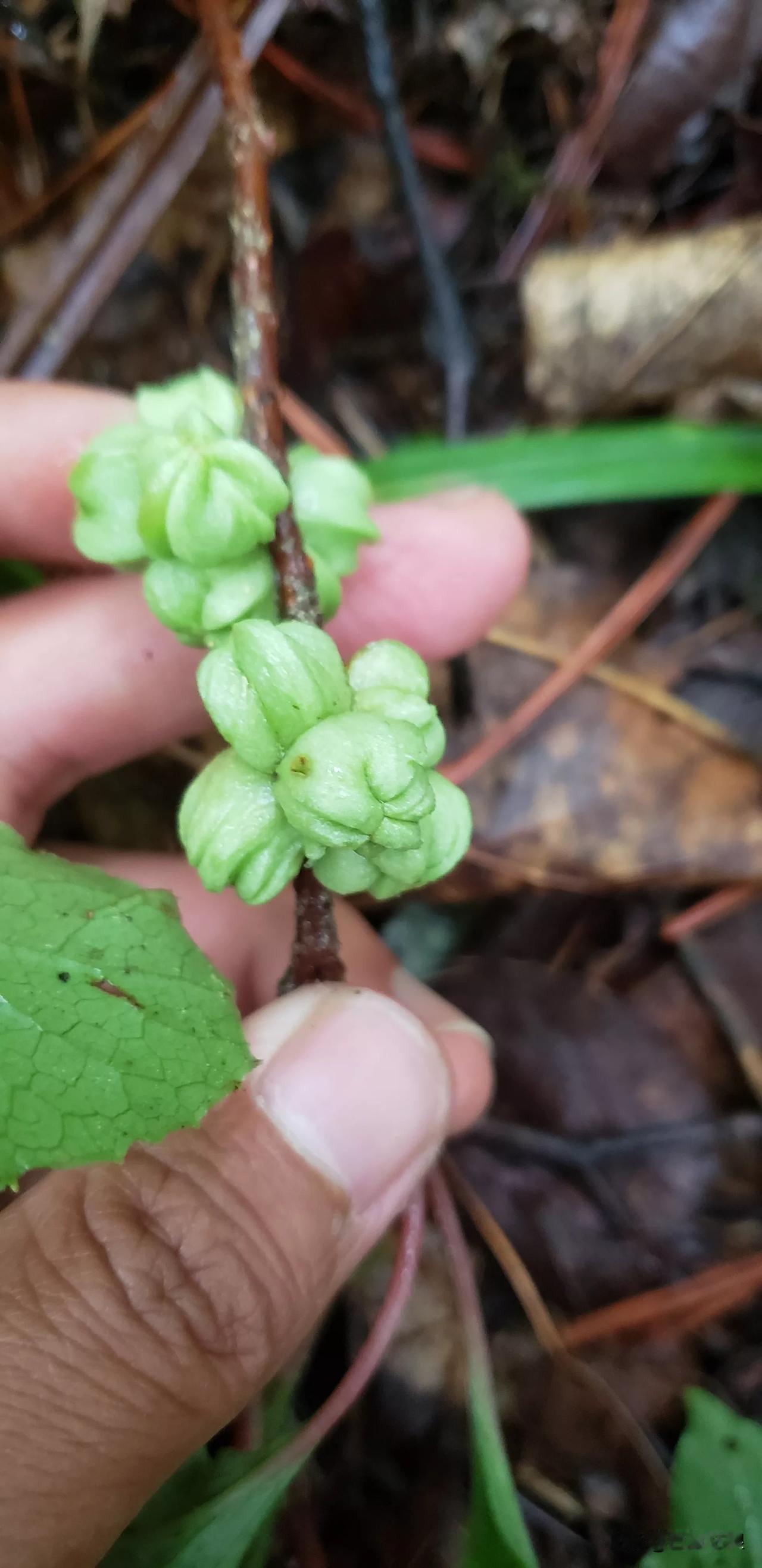采灵芝的时候发现了这个绿色的果实,不知道是啥?