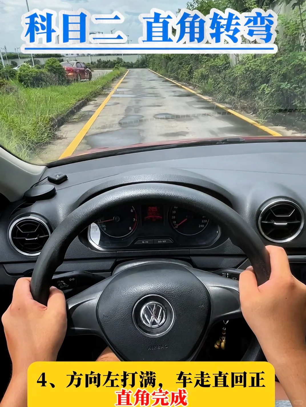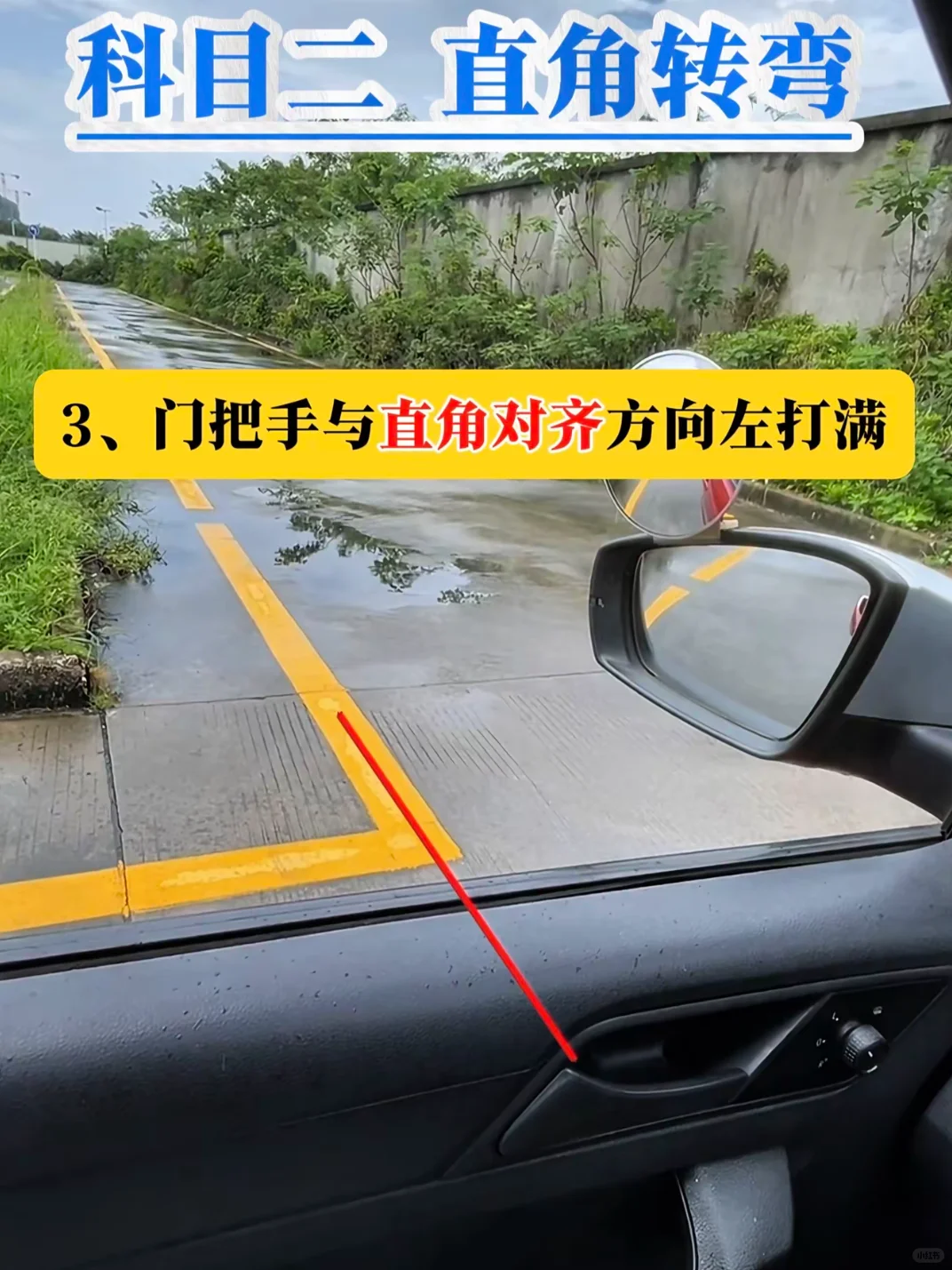 1、进入直角前先打开左转向灯用方方向盘对准地下箭头 3、门把手与直角对齐方向左打满