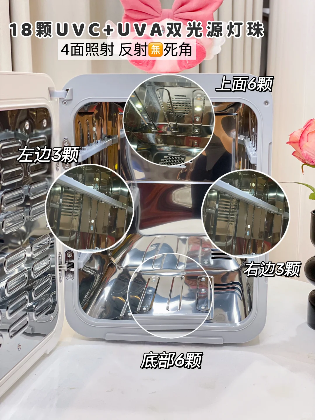 🌟上下左右共18颗UVA+UVC双光源紫外线消毒灯,4面照射0死角