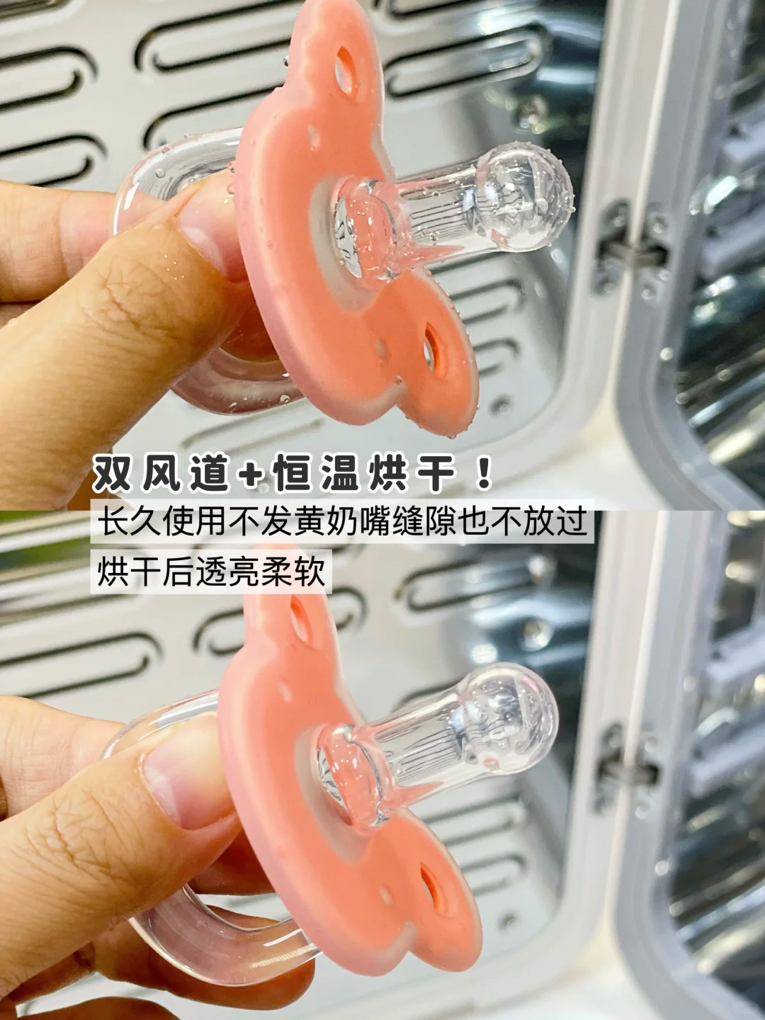 🍃双风道恒温烘干设计,小奶嘴缝隙都能干透而且用久奶瓶奶嘴也不会变黄,没有异味!