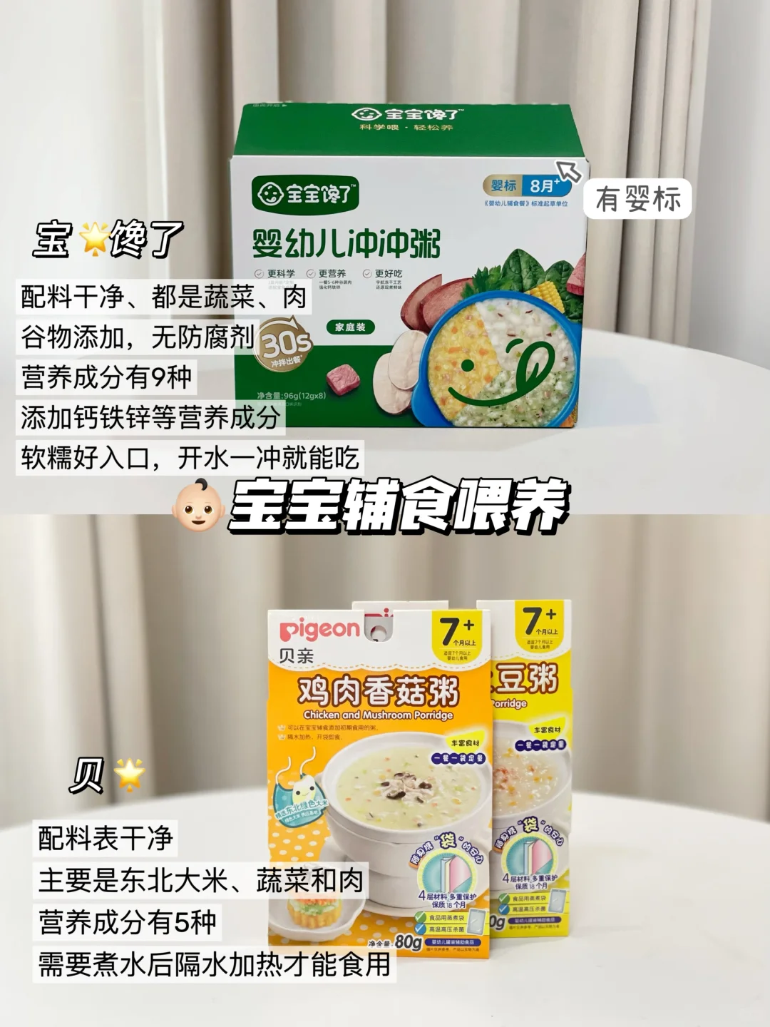 “有婴标”配料干净、都是蔬菜🥬🥕肉谷物添加,无防腐剂
