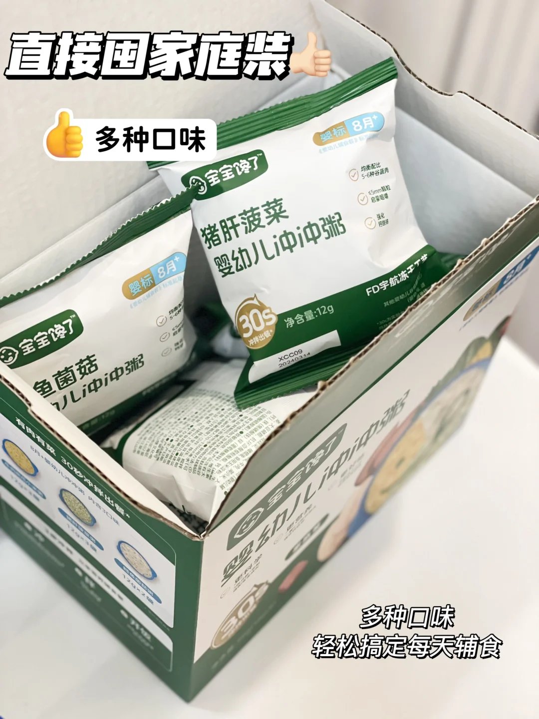 连零食都是囤它家的,这个辅食粥不管营养很全面,而且对比普通辅食粥,不需要另外加热,用的冻干技术,牢牢的锁住食材的营养🥬🥕🍗