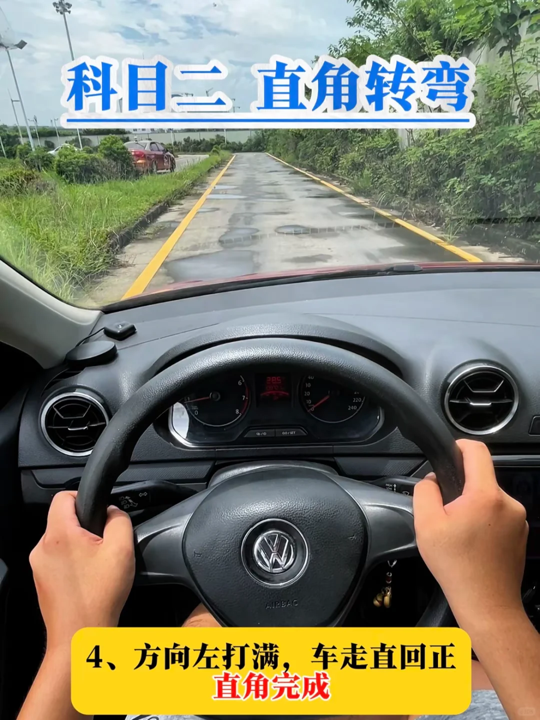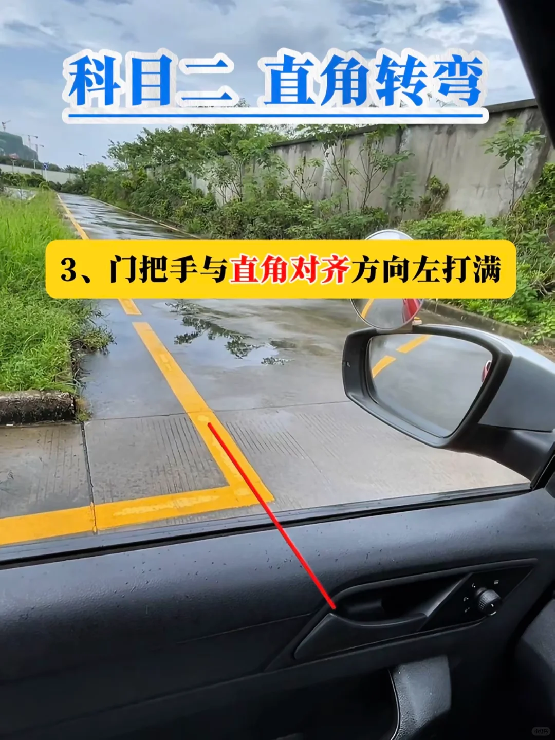 1、进入直角前先打开左转向灯用方方向盘对准地下箭头 3、门把手与直角对齐方向左打满