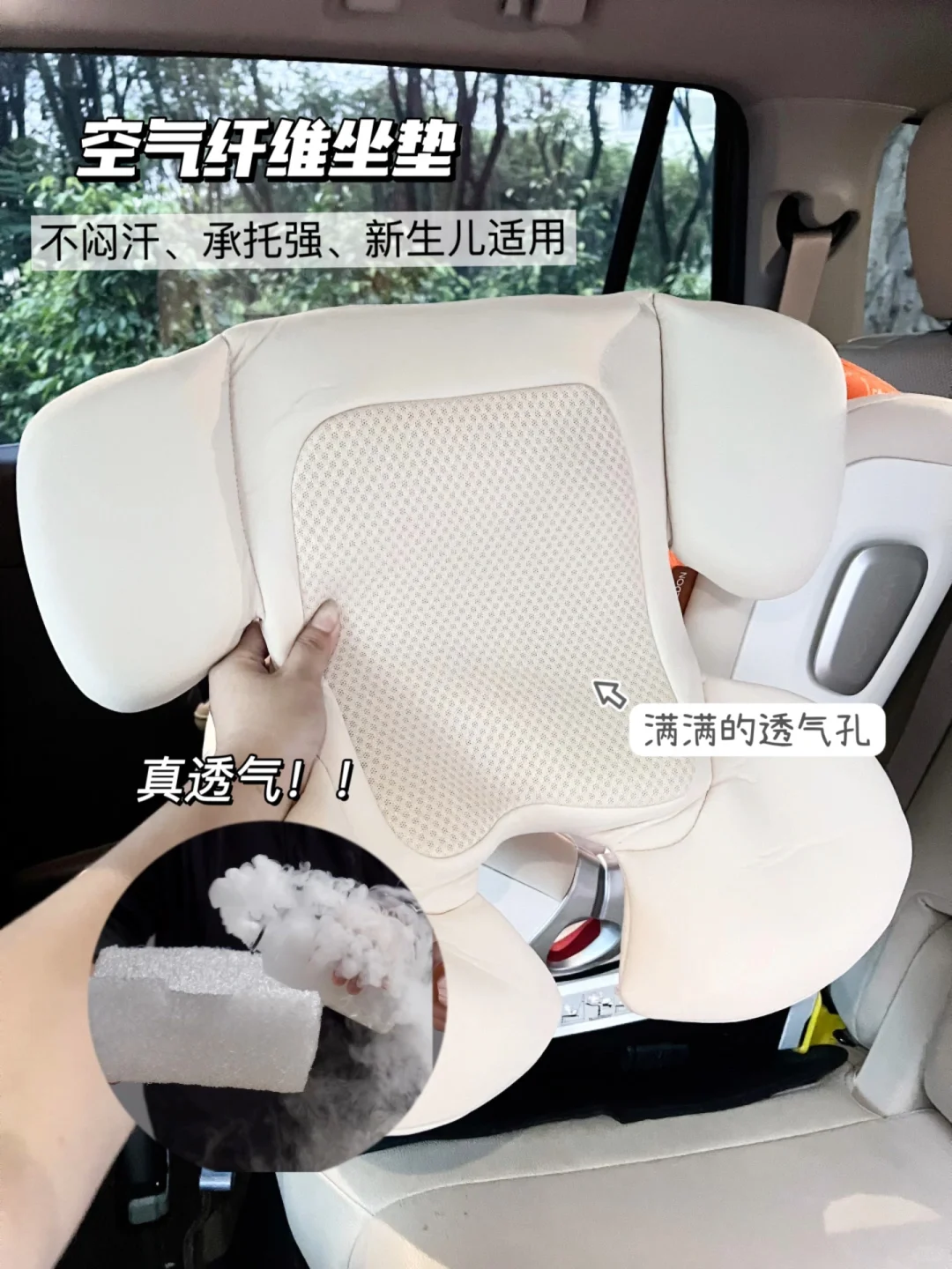 坐垫颈部加长设计,比普通的安全座椅考虑得更到位,宝宝就不会窝脖子了。坐垫还是采用空气纤维材质,满满的透气孔,就算大夏天,宝宝坐着舒适更透气啦。