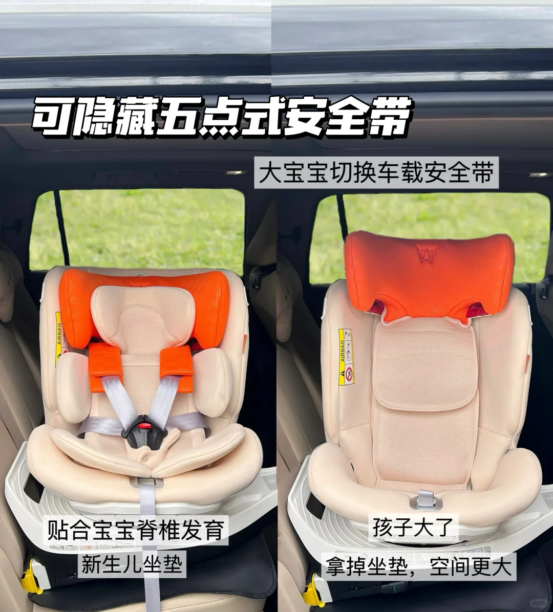 惠尔顿星愿S安全座椅,可以从五点式安全带隐藏起来,切换成大宝宝要用的三点式车载安全带。市面上其他安全座椅,要从五点式切换三点式只能剪掉。所以能隐藏安全带的设计可太贴心了。