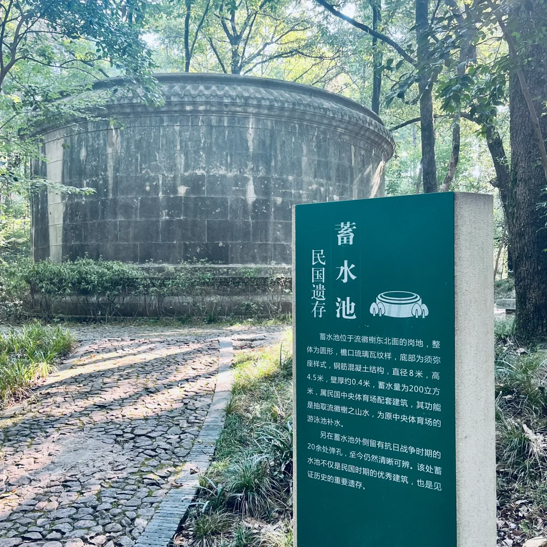 根据介绍,蓄水池是民国中央体育场(现南京体育学院)附属建筑,主要用于给游泳池补水。