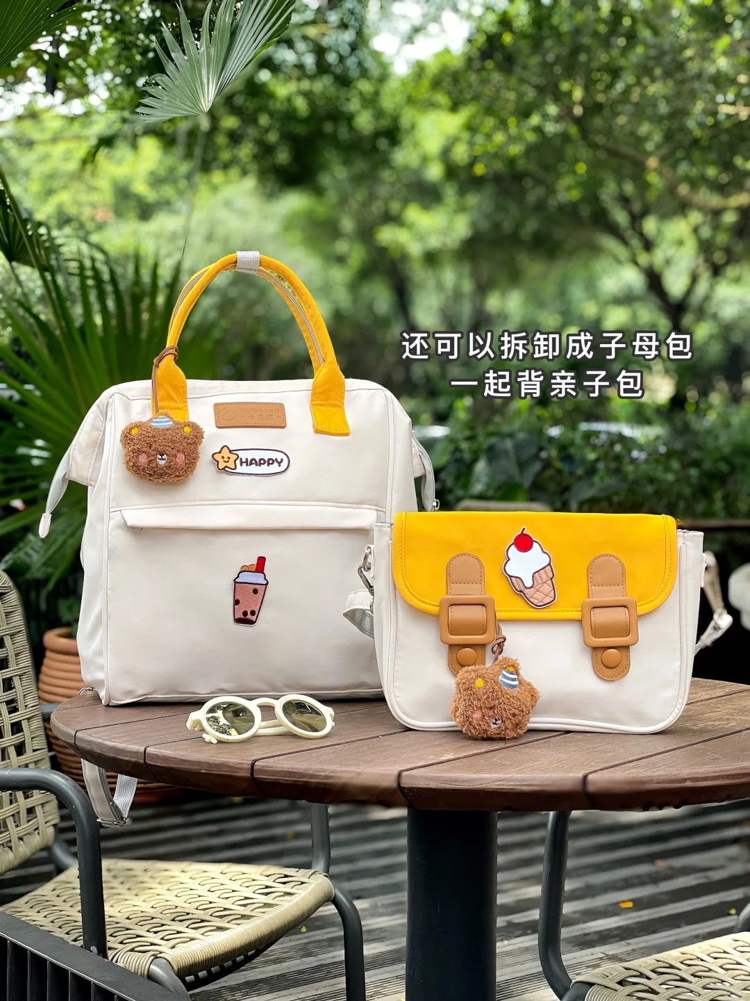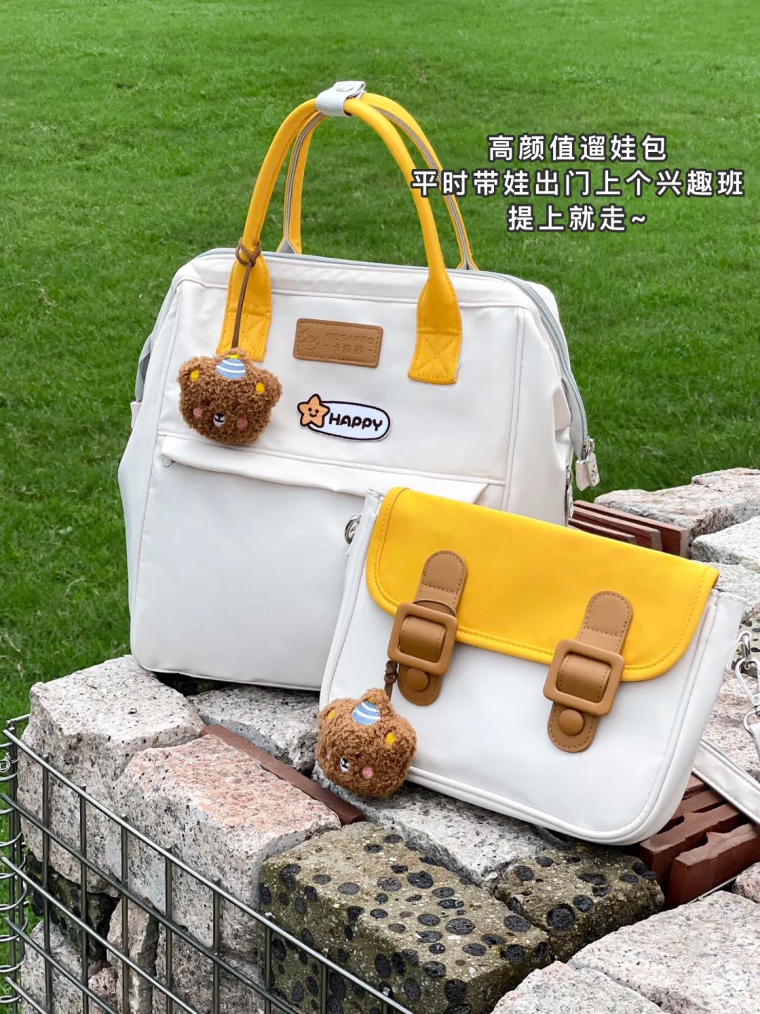 百元就能入手两个包! 它不🔥都不行,我说的🤭 这年头哪个宝妈出门还没个妈咪包 可以说这个包不仅满足妈妈的少女心 又能满足了日常带娃的需求 我现在出门遛娃基本上都是背它 小巧轻便,背着一点压力都没有 🌟里面还是分类隔层设计的 找东西再也不用乱翻一顿了 侧边拿取纸巾设计我都想给设计师加🍗 👌还能拆卸变成亲子包 宝宝一岁后,各自背一个不要泰好看 还是防水面料💦我们出去玩的时候下雨淋到也没湿🐮