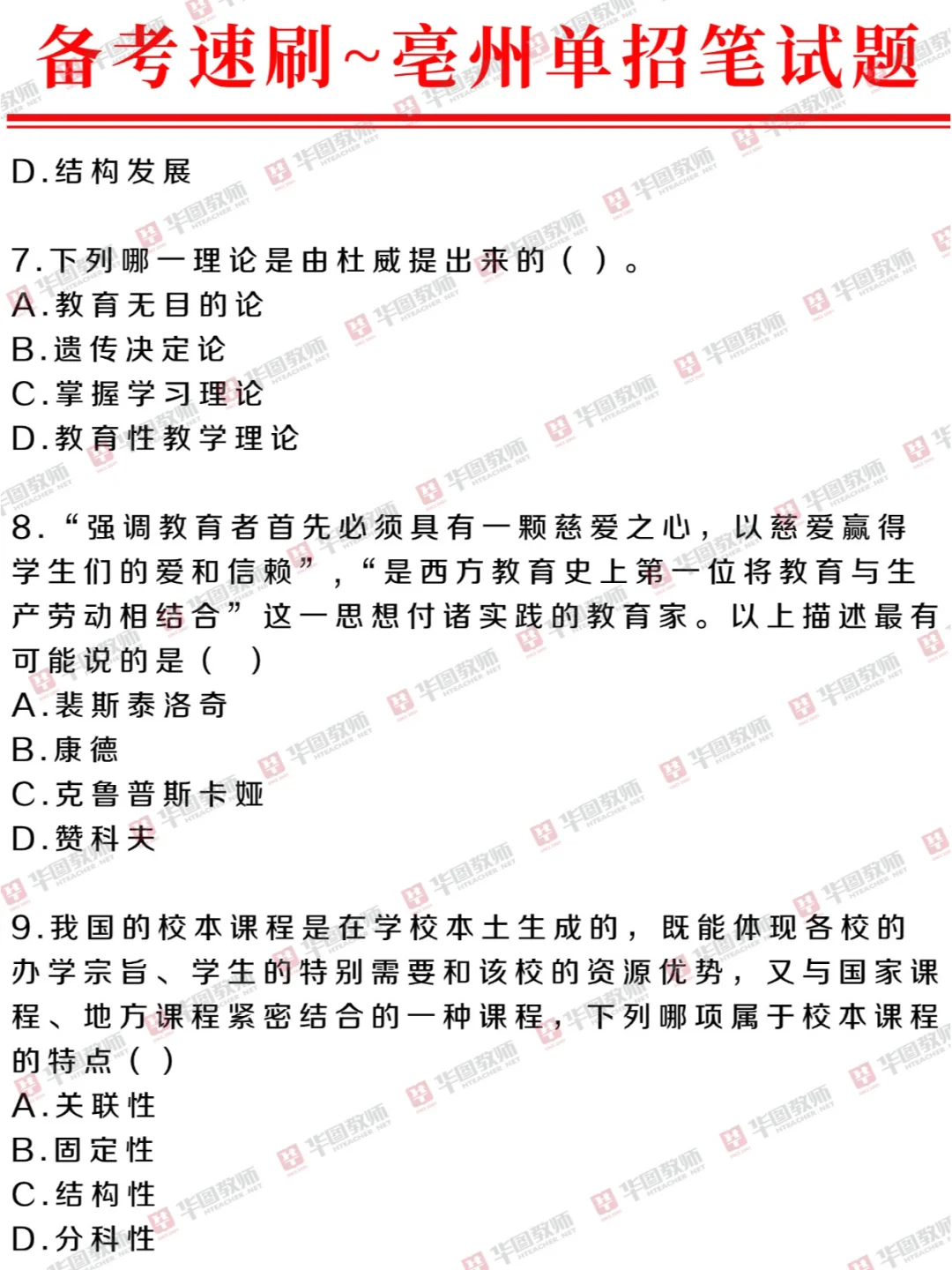 亳州21-24年教综笔试题~单招备考刷起来