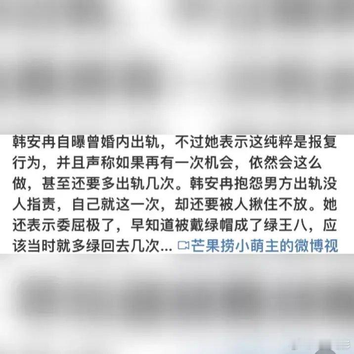 韩安冉自爆曾婚内出轨,自感只绿一次很委屈