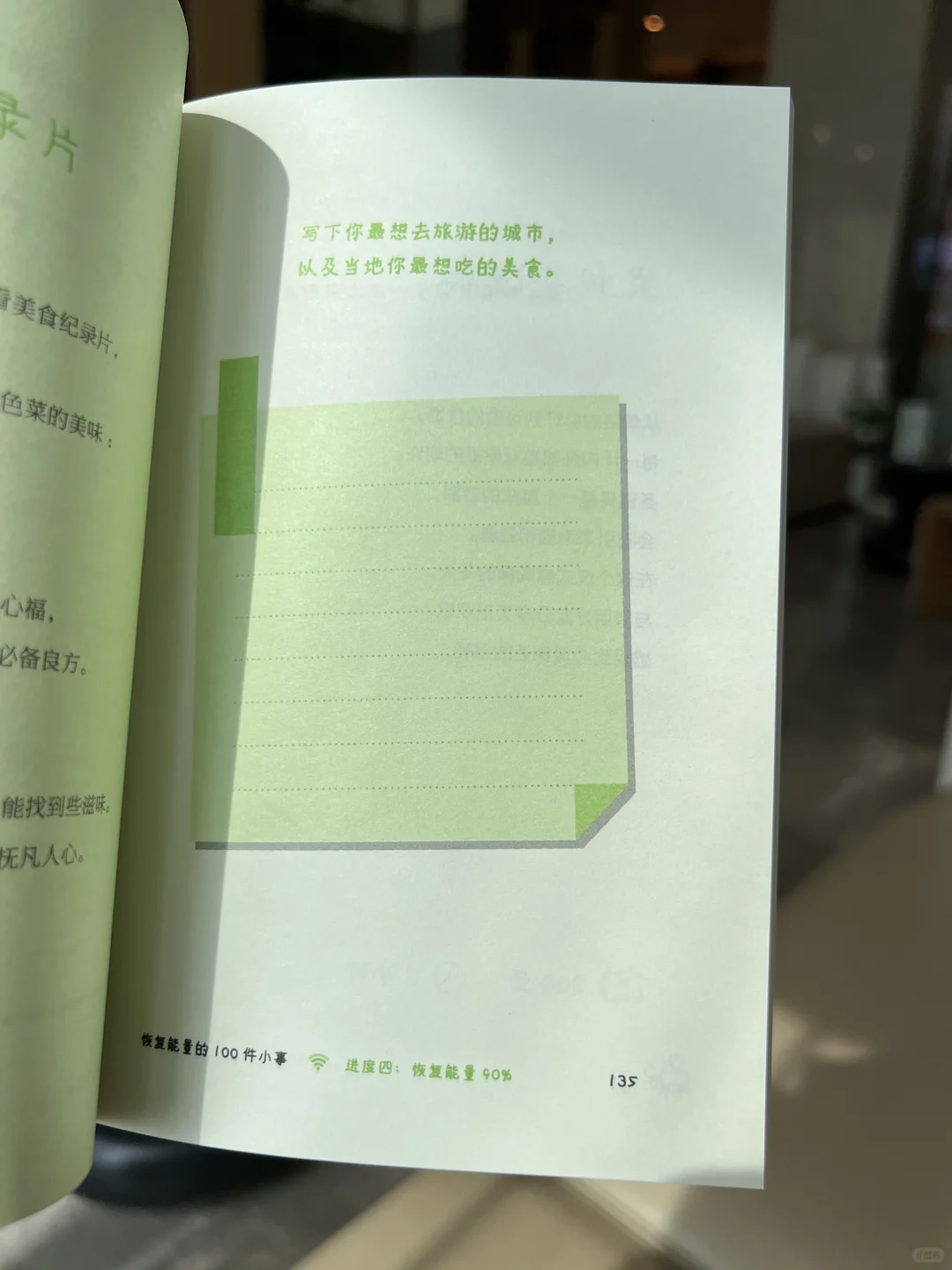 🟡不妨从清单里挑选一些喜欢的事情来做,每天都尝试做一件快速恢复能量的小事,养成好的习惯后,你就能得到一个永久续航的超大电池🔋