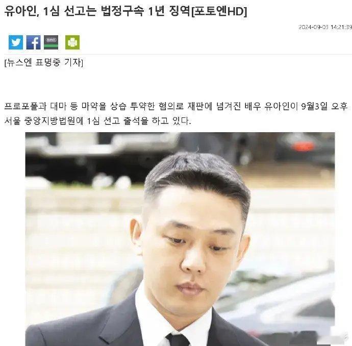 首尔中央地方法院刑事25部(主审法官:池贵衍)于3日以违反毒品管理相关法律(精神药品)等罪名,判处刘亚仁一年有期徒刑,并处罚金200万韩元,追缴约154万韩元。此前,检方曾求刑四年。刘亚仁当天身穿黑色西装出庭。