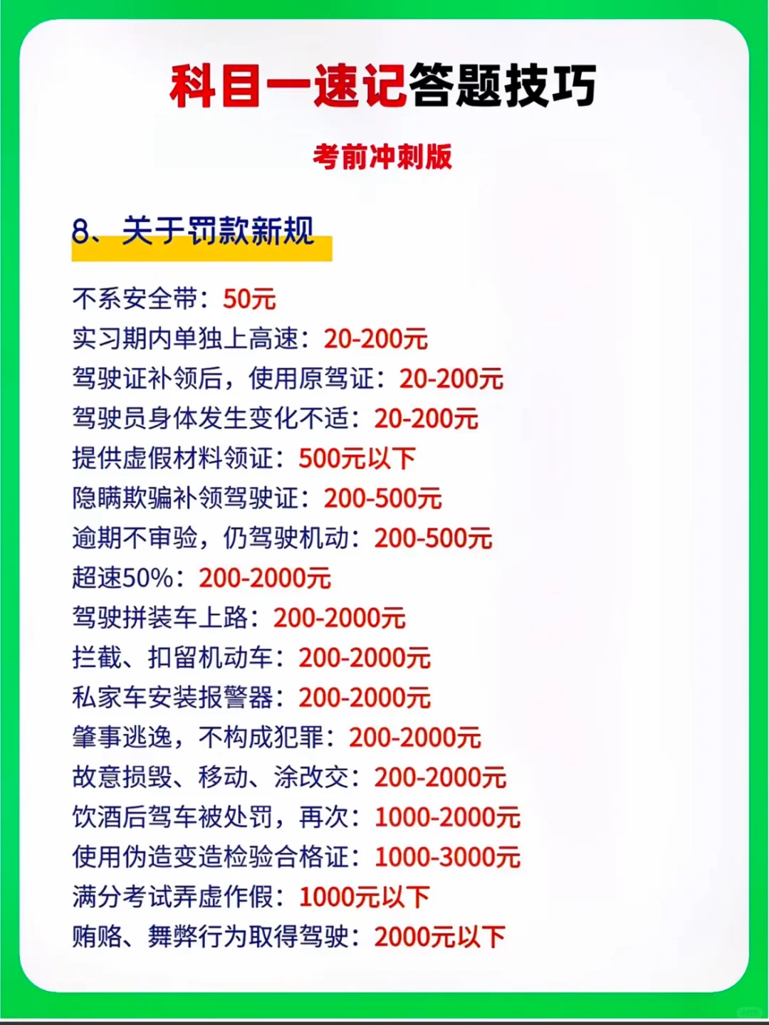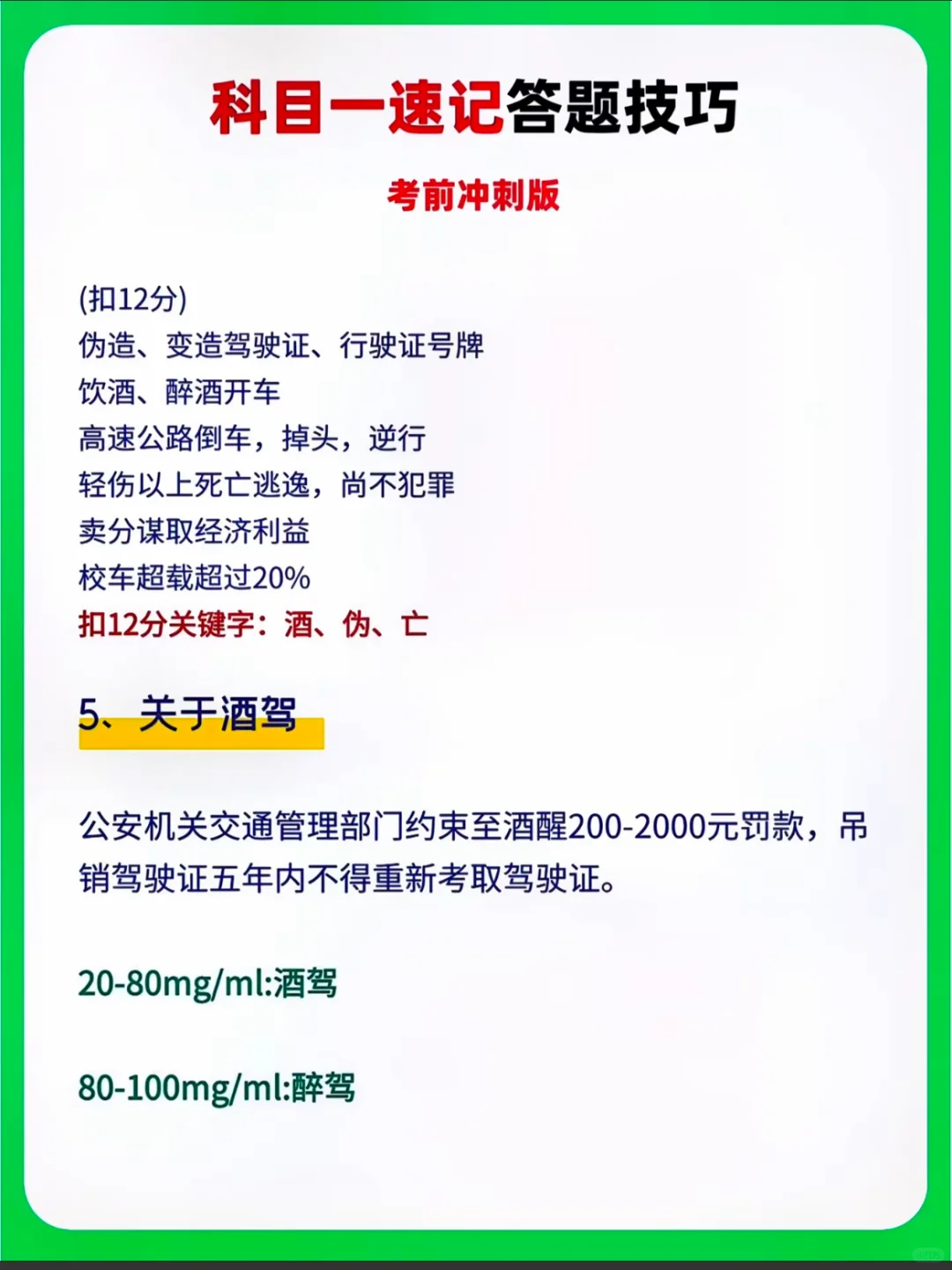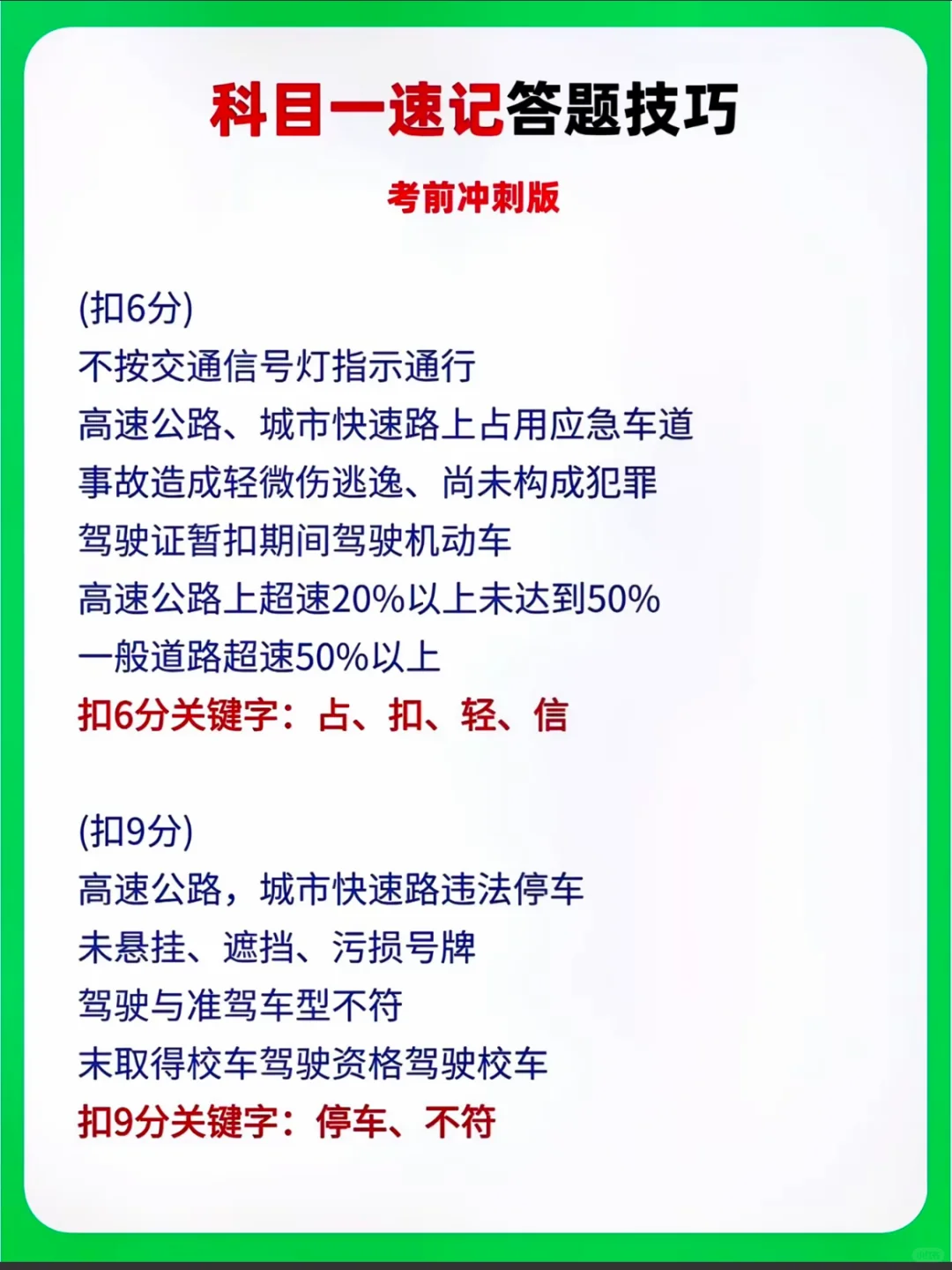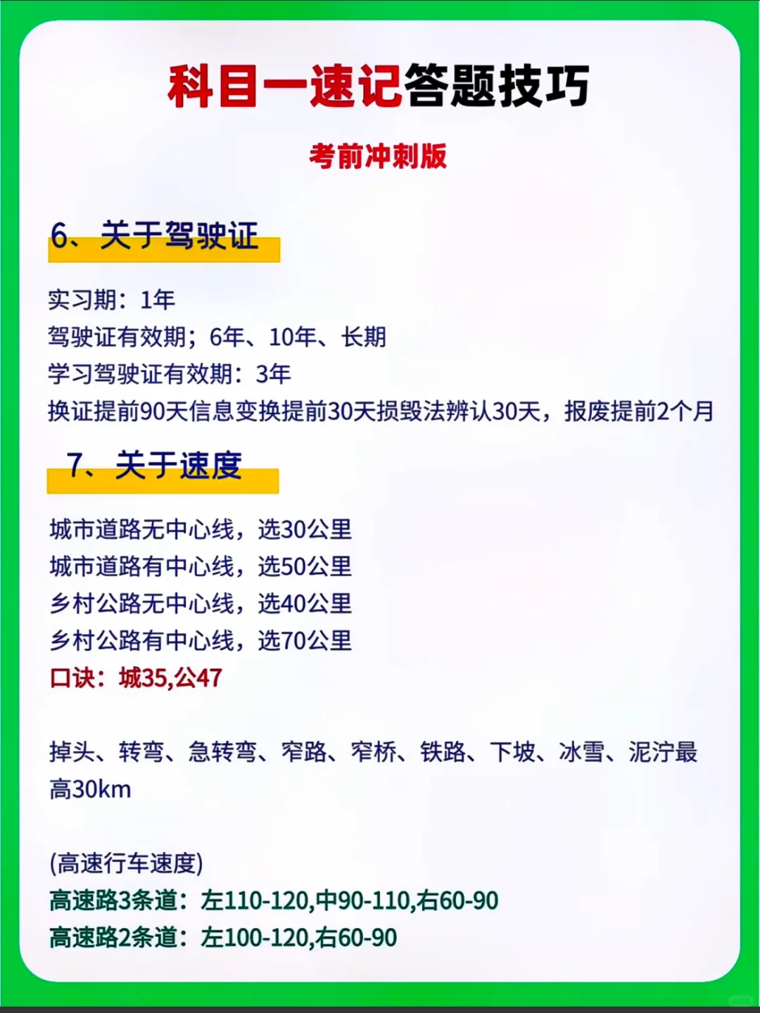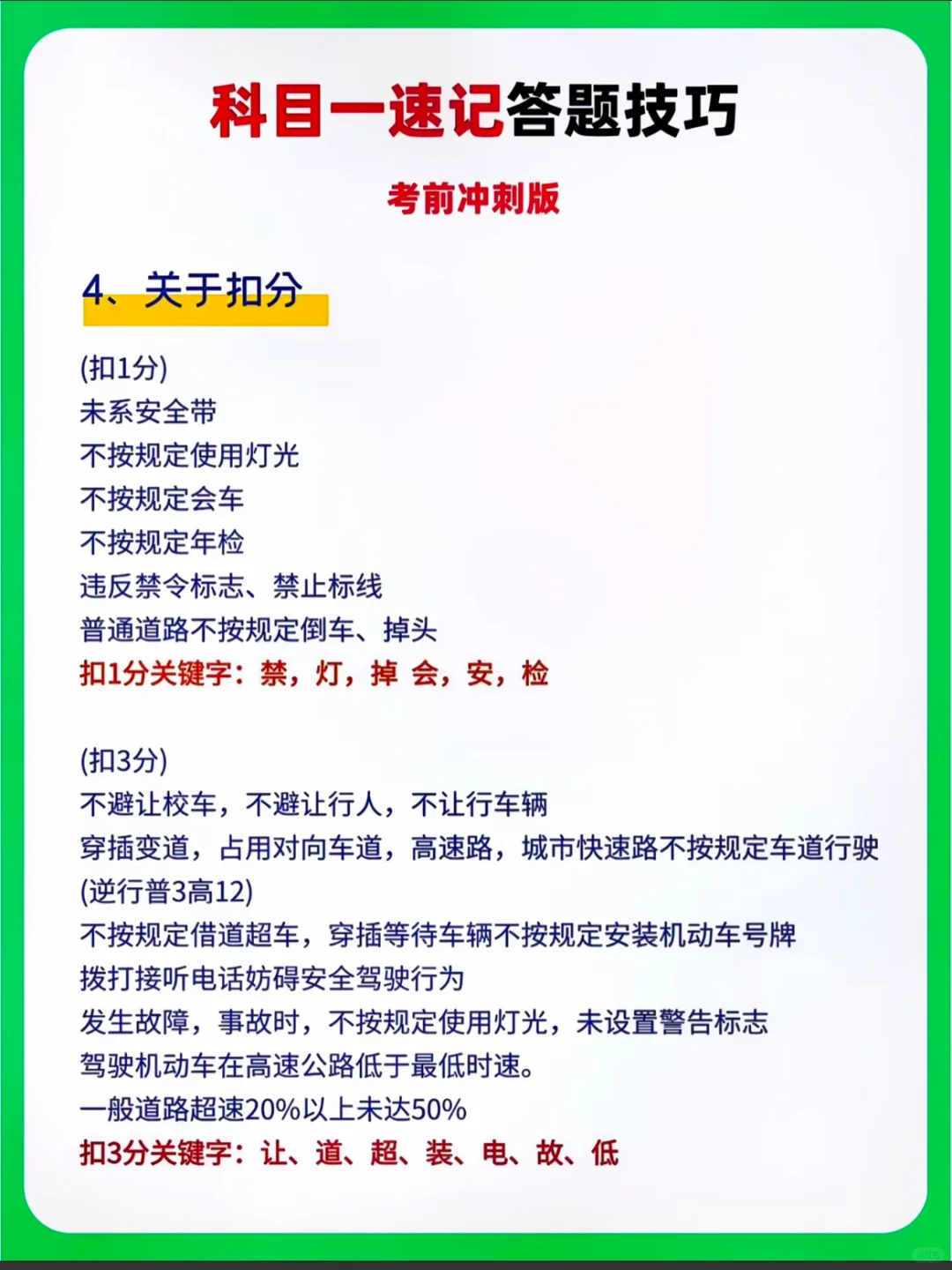 科目一速记答题技巧