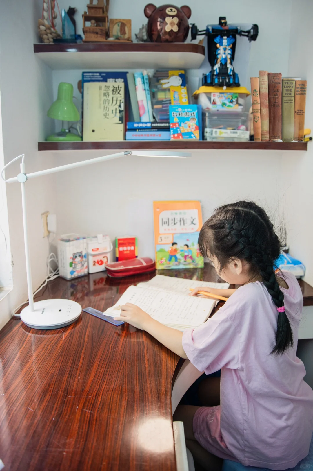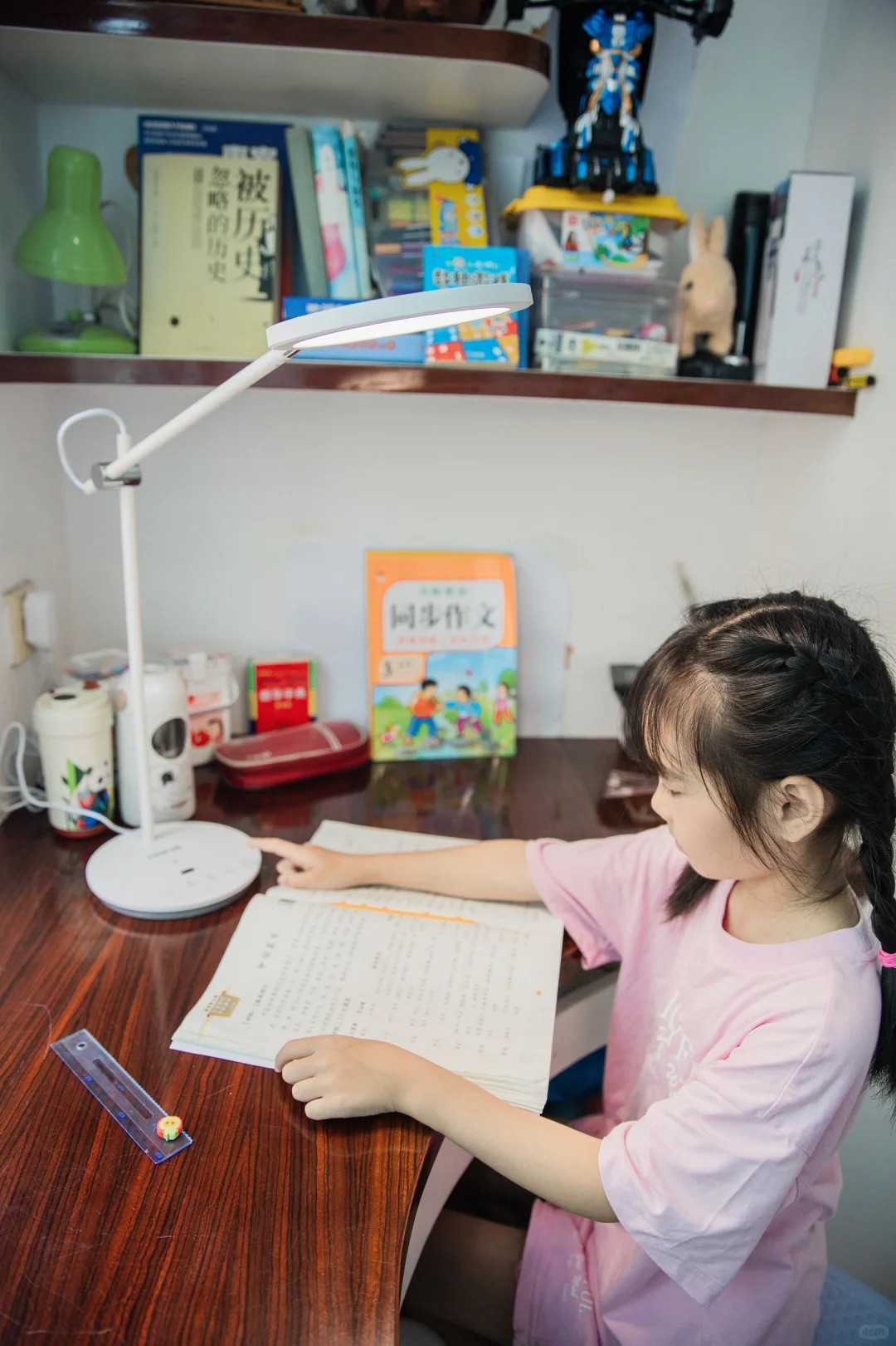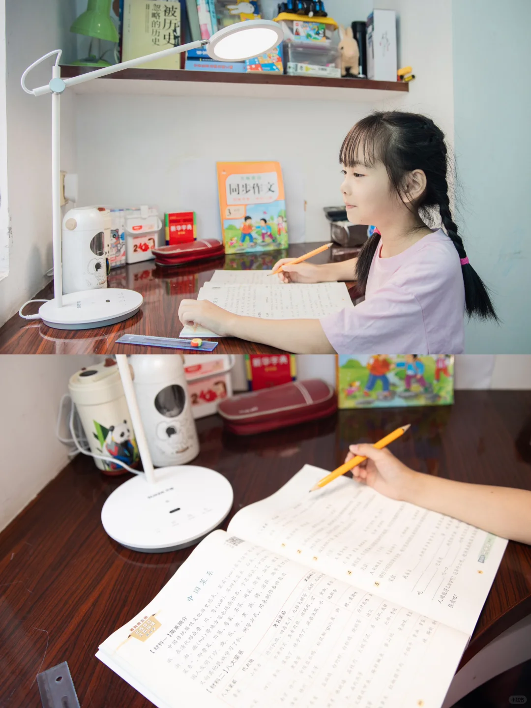 二升三暑假,数学的计算/语文阅读理解作业一下子难度变大了很多,在家写作业和阅读的时间多了很多,在还好台灯给力,高度还原太阳自然光,有效降低近视风险,日夜兼程了两三周,终于赶完所有作业。