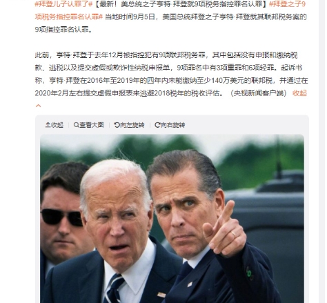 漂亮国也是有意思,5月底是前任总统特朗普因“封口费”案34项指控遭定罪,现在是现任总统拜登之子亨特·拜登就其联邦税务案的9项指控罪名认罪。一个是本人有罪,一个是儿子有罪,你觉得谁更牛逼?