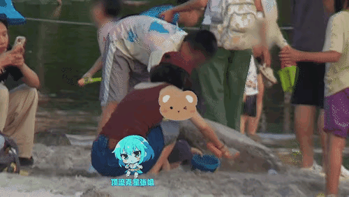 她挽起裤脚和儿子一起玩,还陪儿子坐在沙子上面,娘俩实在太有爱了吧!