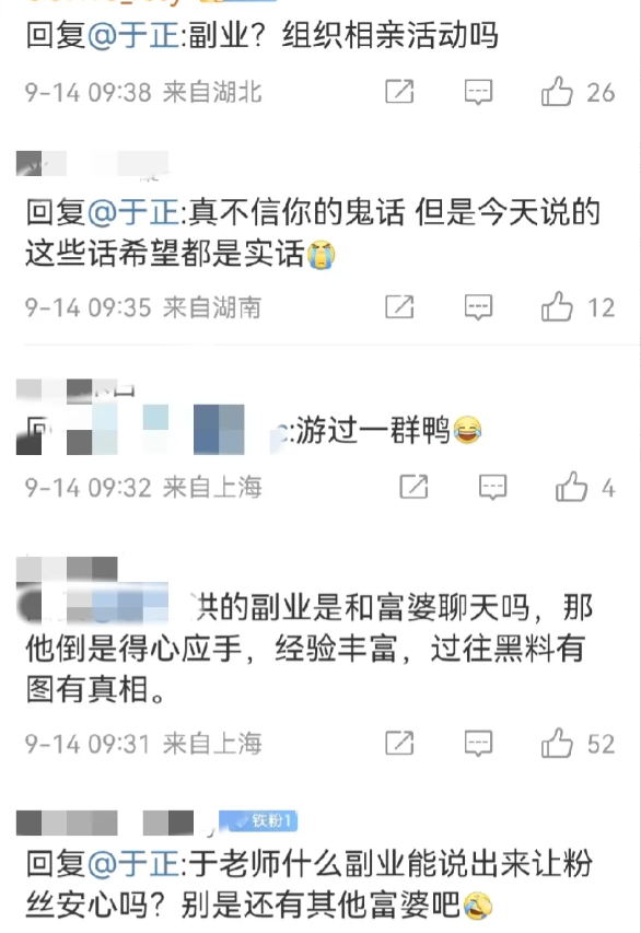网友们看后纷纷评论道: 真不信你的鬼话,但是今天说的这些话希望都是实话。 于老师什么副业能说出来让粉丝安心吗?别是还有其他富婆吧。 他俩婚房谁买的? 你是在他们床底下吗?这么清楚。
