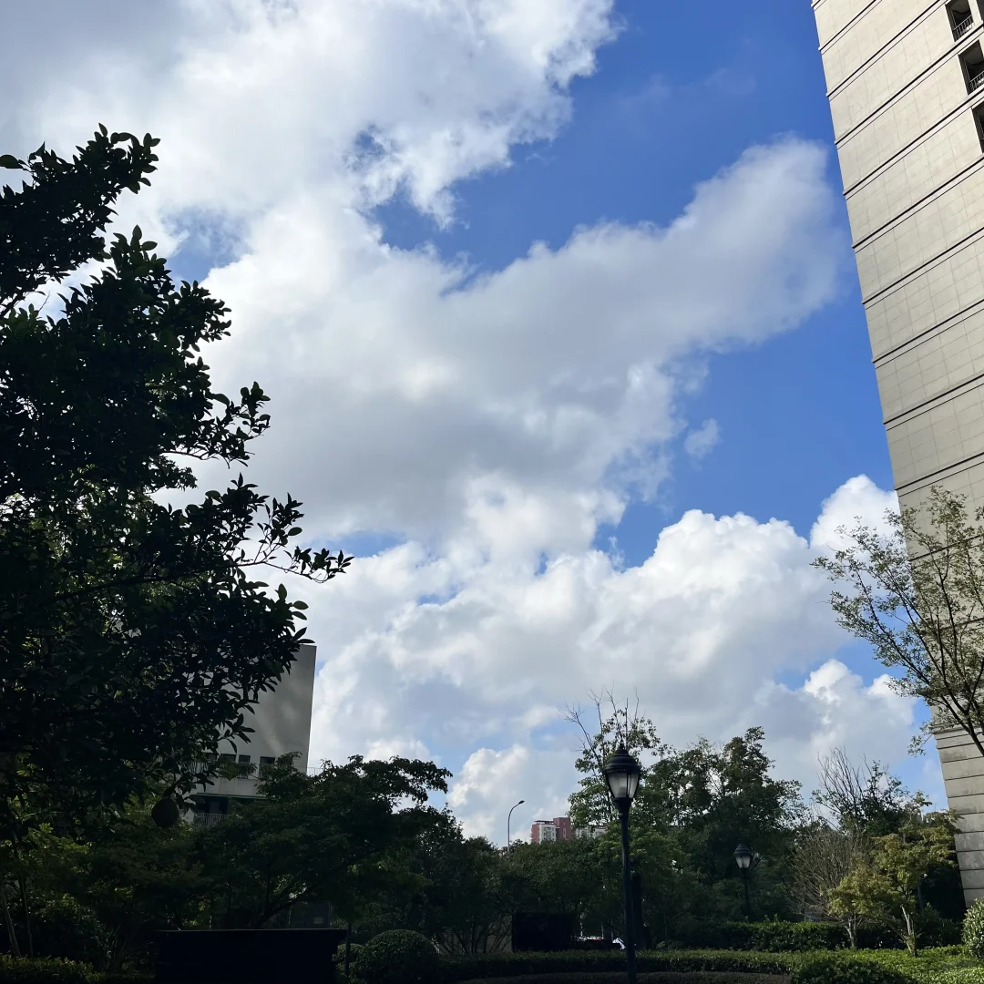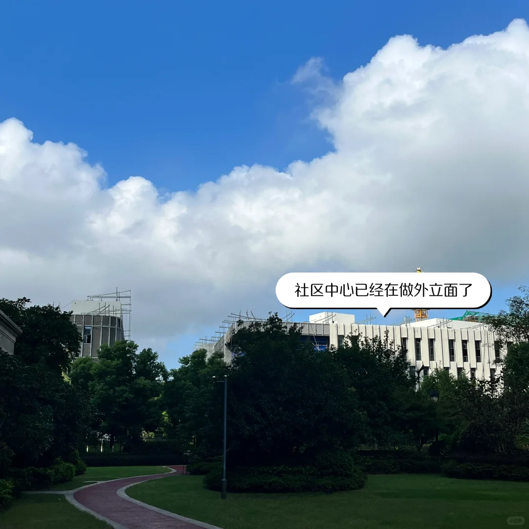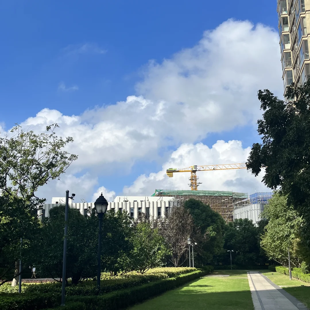 小长假第一天➕蓝天白云绿草地, 原图直出的“南京蓝”。 只不过马上要来的台风, 却让这个假期的主题变成了『等风来』。 P.S.燕子矶钟化片区社区中心已经在做外立面了🏗️