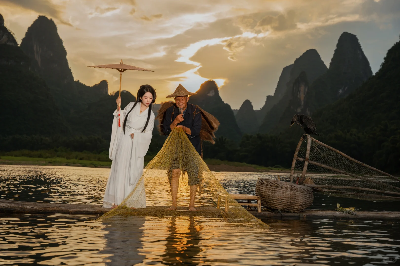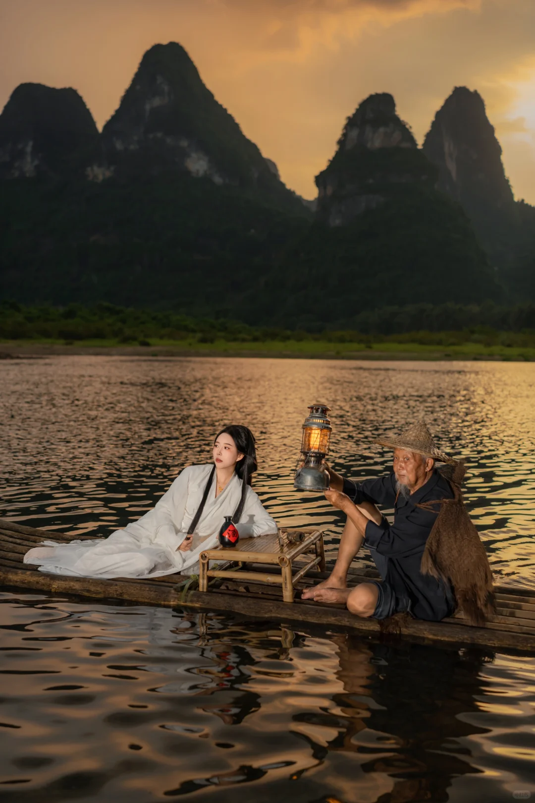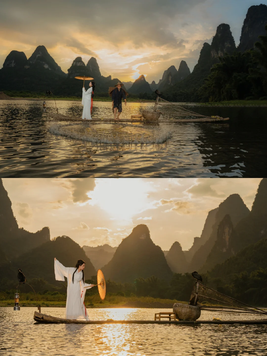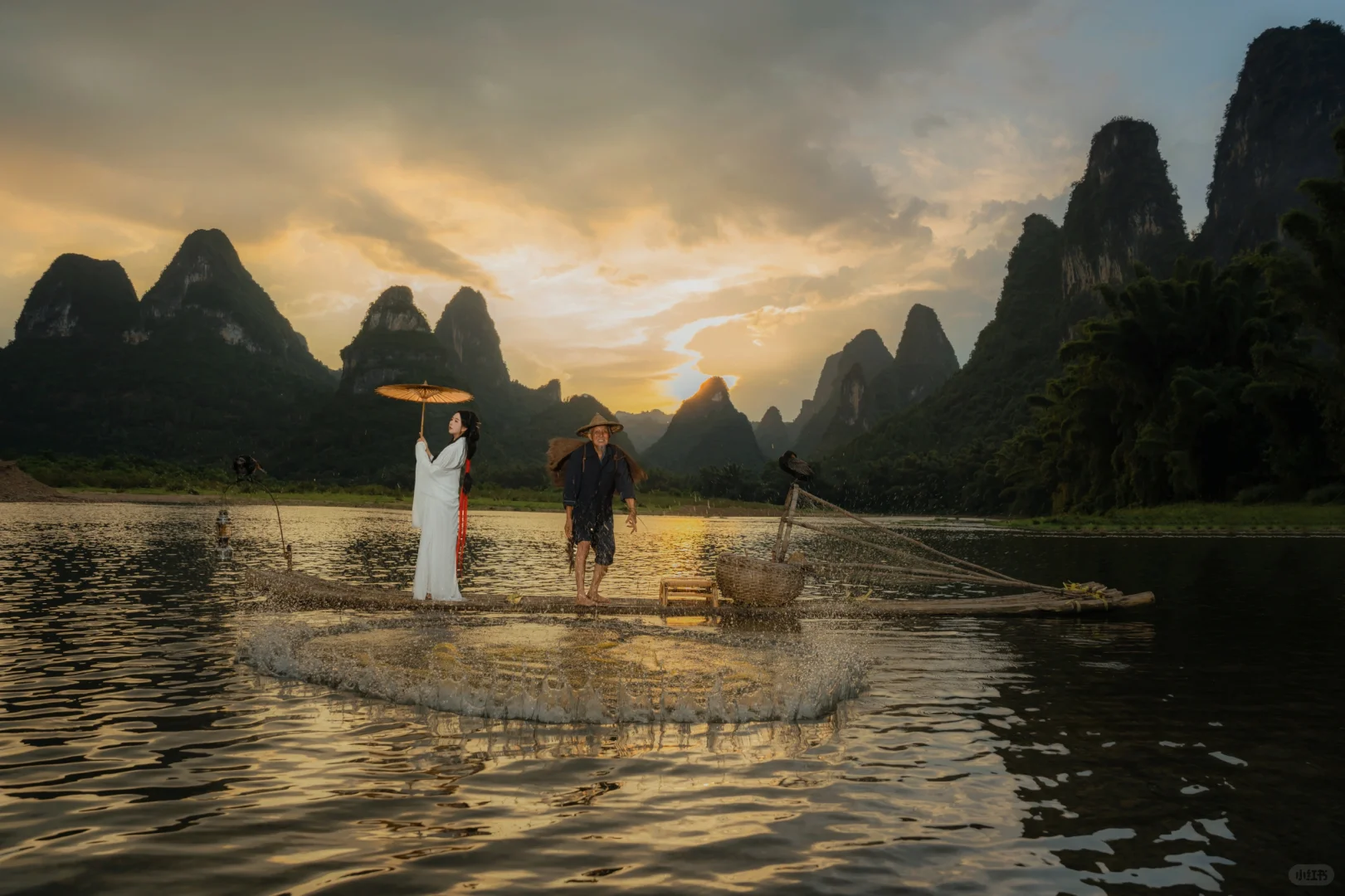 桂林山水甲天下之地,拍渔舟唱晚也太美了