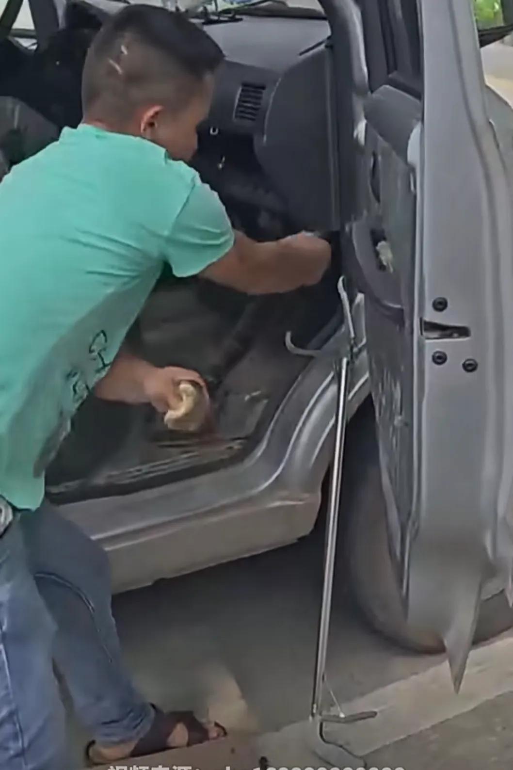 近日广西,男子徒手从面包车里 拽出近2米长的眼镜王蛇! 网友纷纷好奇,这是怎么钻进去的呢! 该男子使足力气,手握住蛇头另一只手抓住蛇身体,一点点往外拉,看得出来蛇也在用力不想出来。 蛇被拽出来大概接近两米长,长得粗大结实。这个男子胆量大,看来是专业捕蛇高手,动作娴熟,一点也不害怕,可是看的人却心惊肉跳!(网图侵删)
