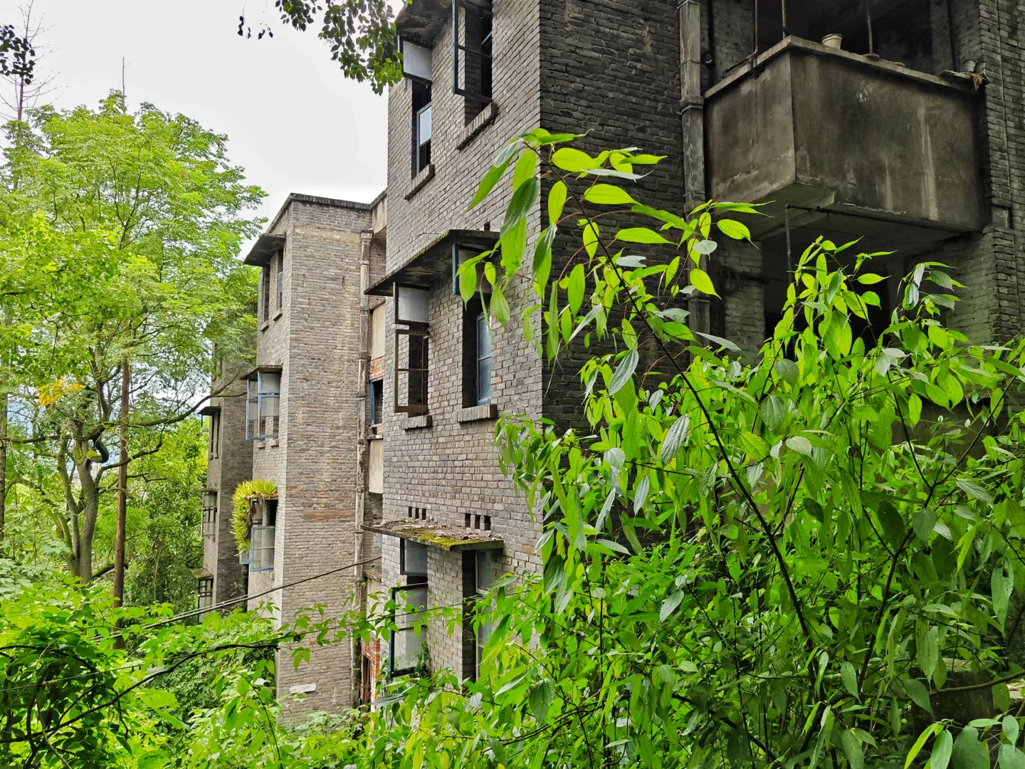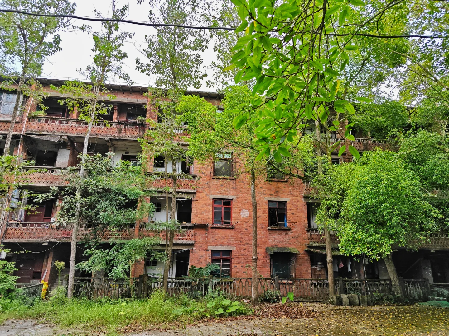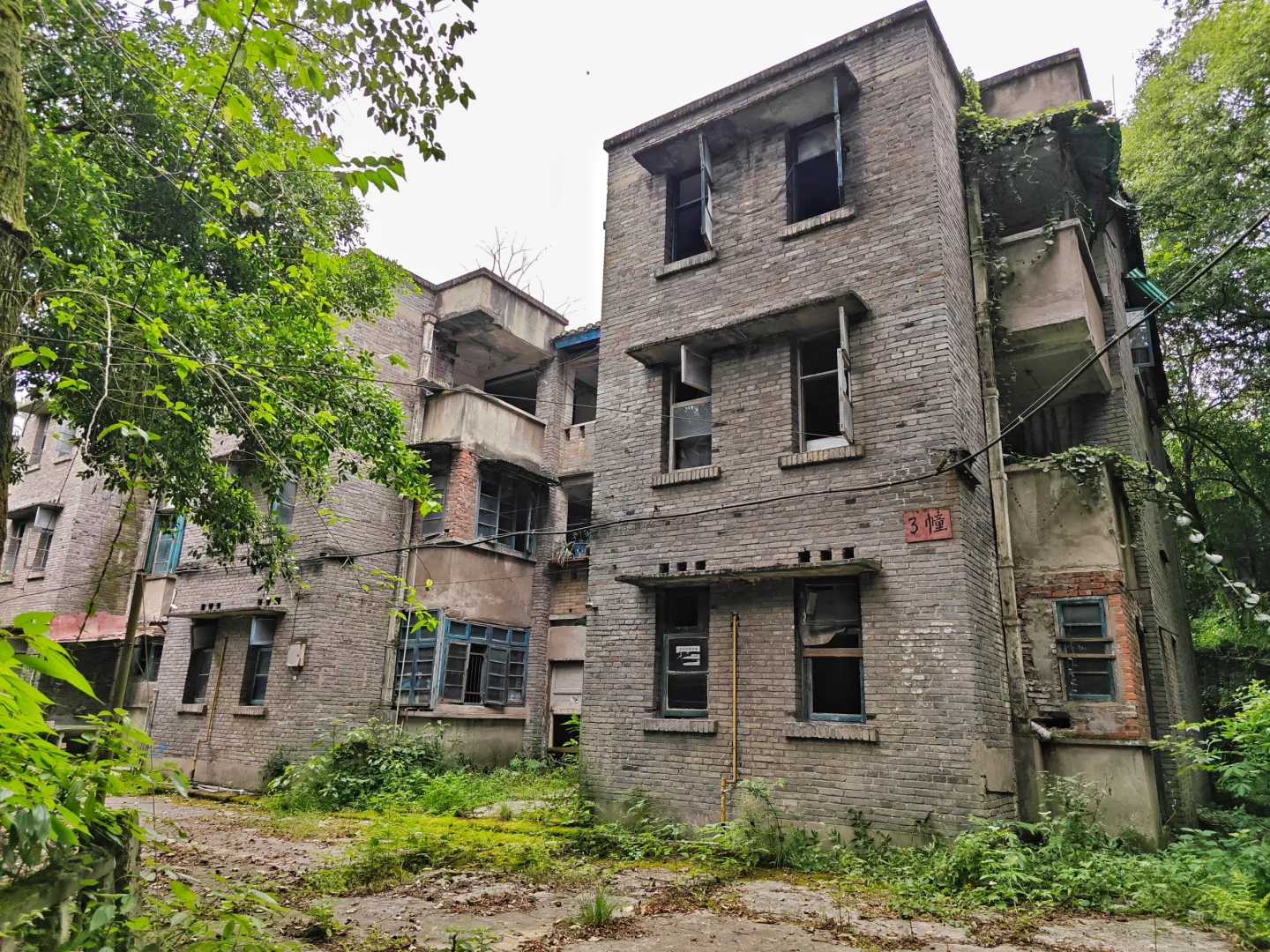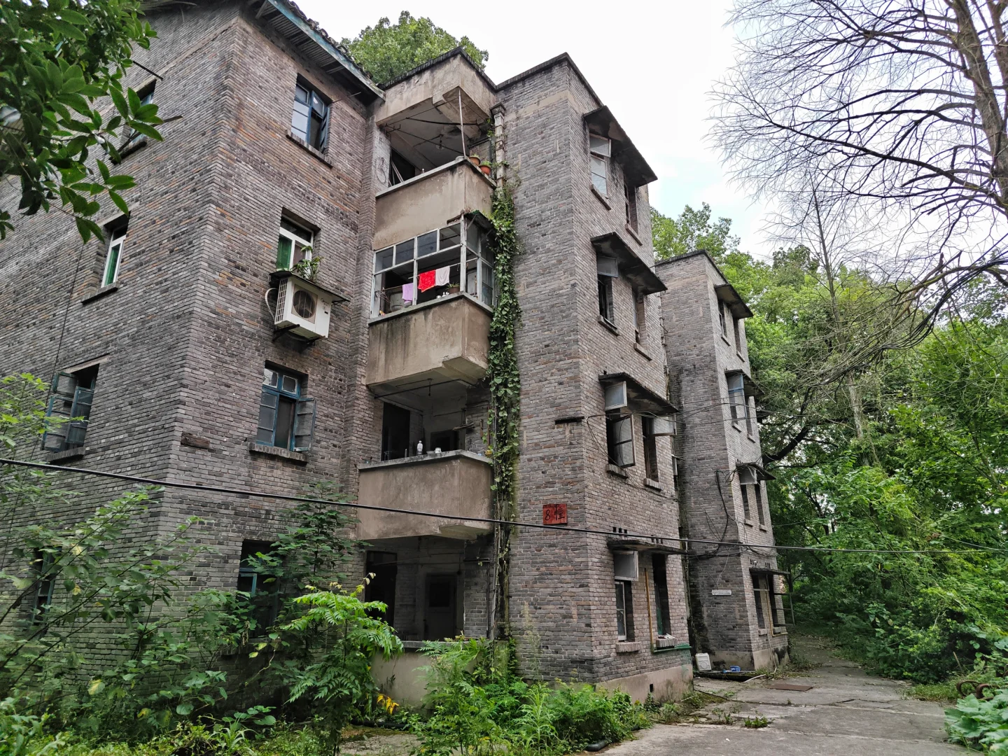 老家属区现在剩的原住居民很少,很多房屋空置了,有的家属楼租给了其他单位,比如附近养老院的员工居住。这些家属楼几乎全是六七十年代修建的筒子楼,但有少数几栋四层小楼是八十年代初修建的套房。走在家属区明显感到非常冷清,没有什么人活动,树木茂密,山坡上更是灌木杂草丛生,还有几栋完全废弃的家属楼,可见大部分原来住户已经搬走。