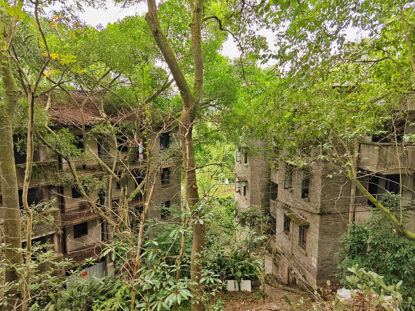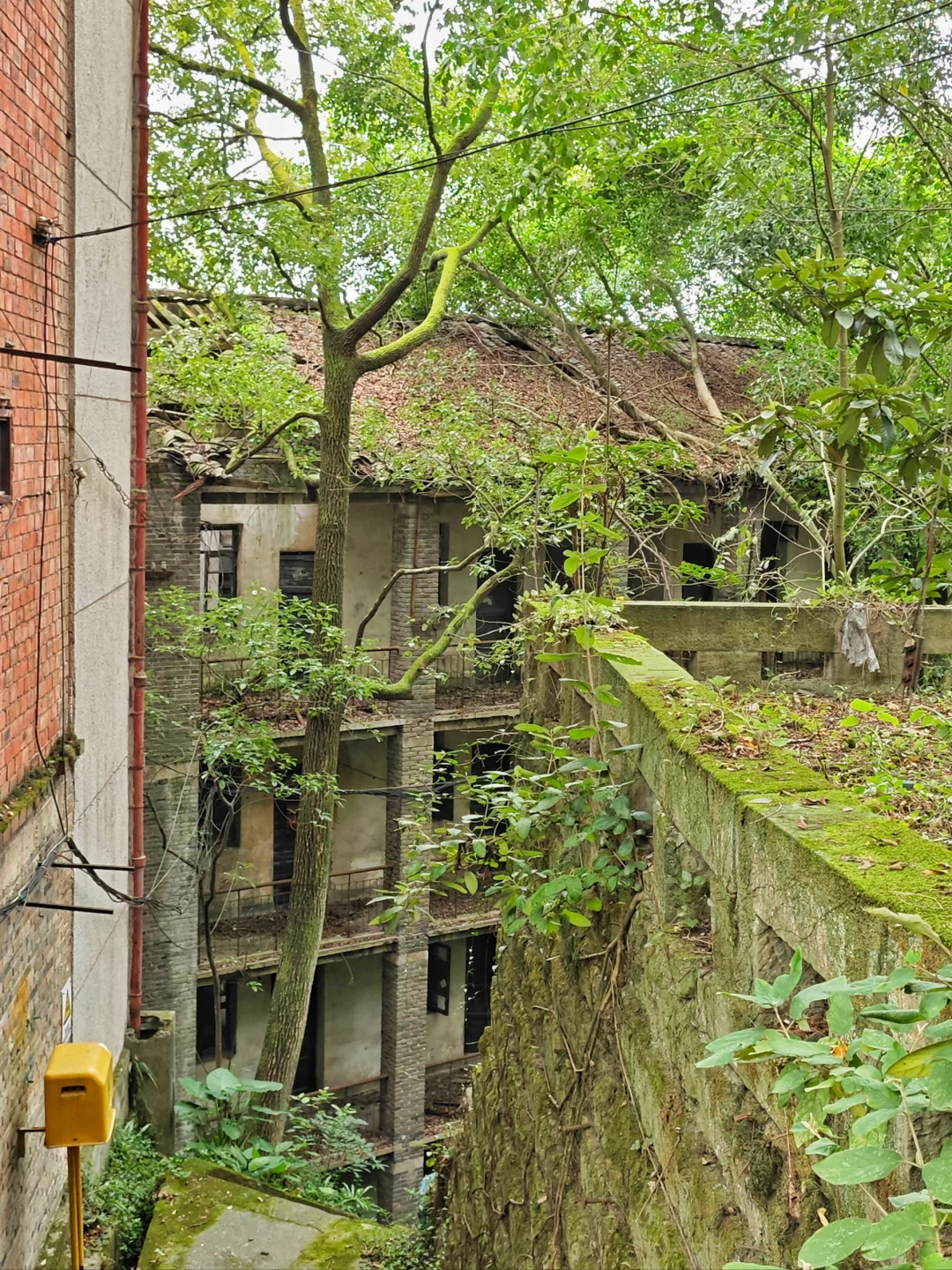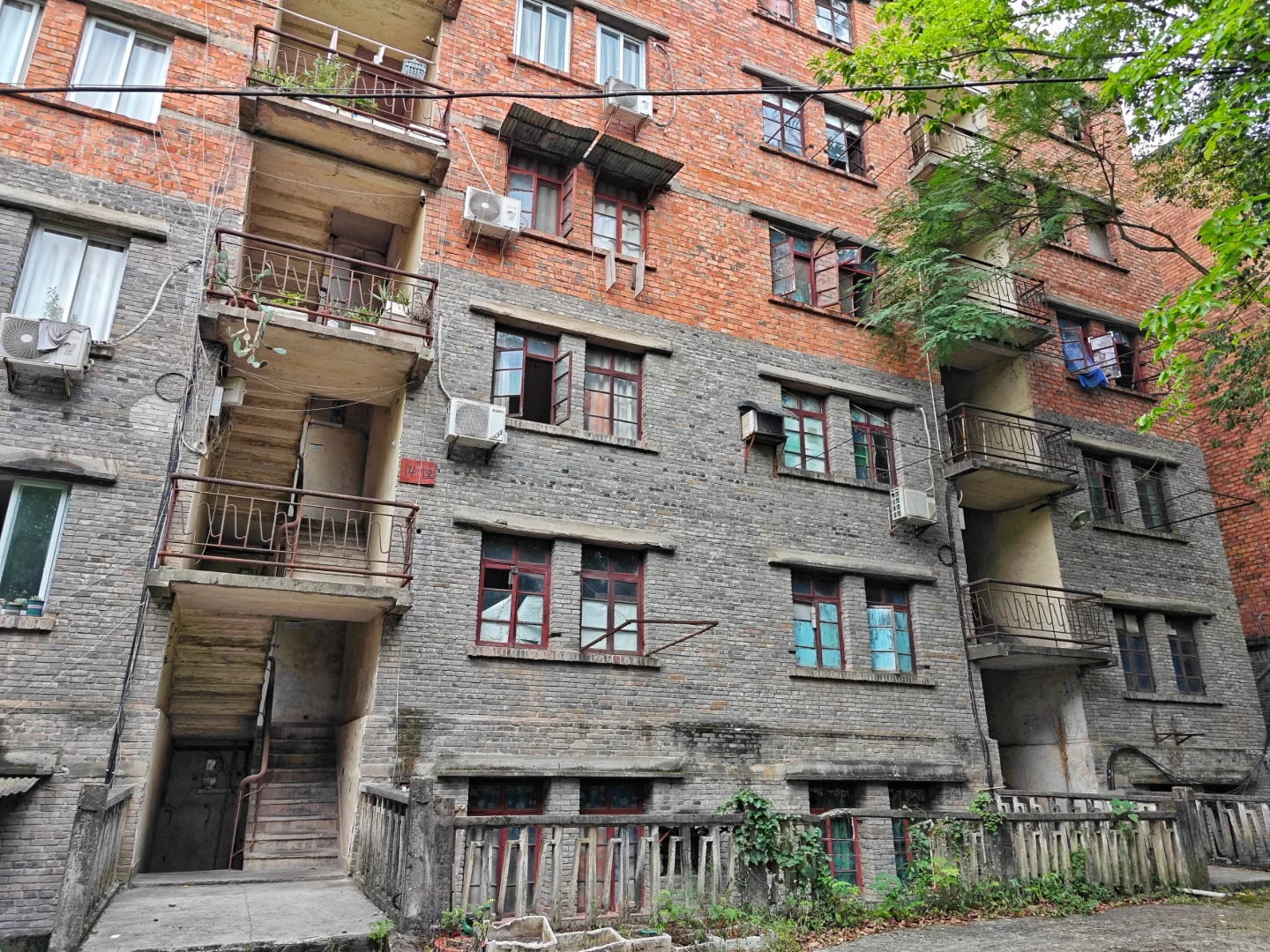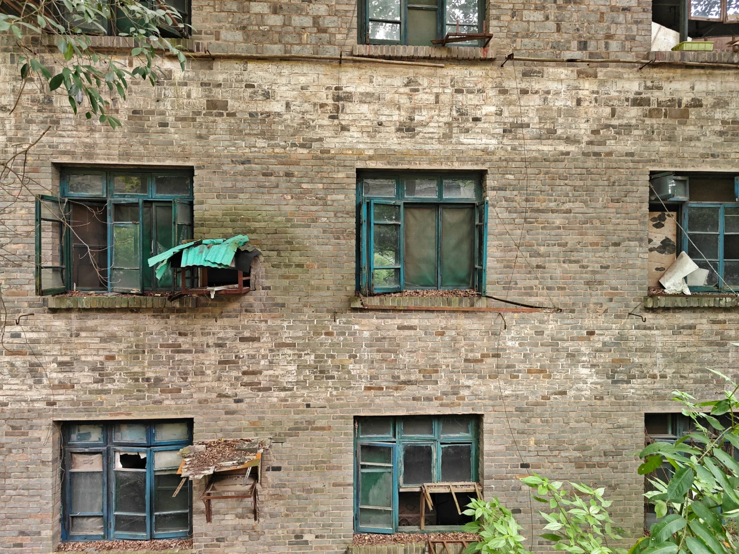 老家属区现在剩的原住居民很少,很多房屋空置了,有的家属楼租给了其他单位,比如附近养老院的员工居住。这些家属楼几乎全是六七十年代修建的筒子楼,但有少数几栋四层小楼是八十年代初修建的套房。走在家属区明显感到非常冷清,没有什么人活动,树木茂密,山坡上更是灌木杂草丛生,还有几栋完全废弃的家属楼,可见大部分原来住户已经搬走。