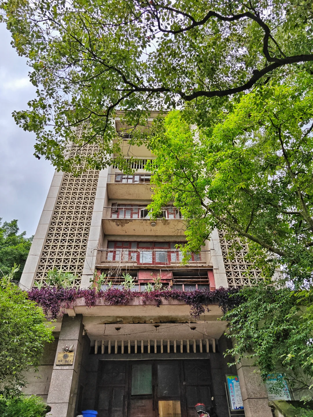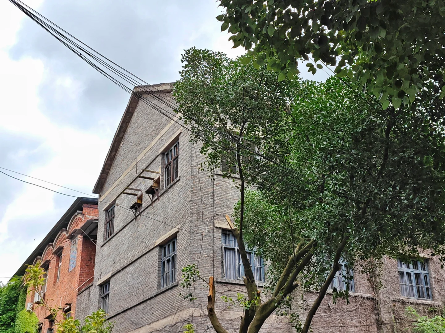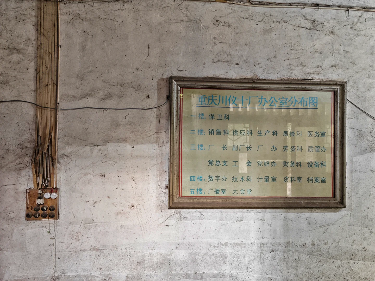 十厂的厂区也是旧房为主,办公楼还是一栋七十年代的筒子楼,而且有一部分都是空置的,可以直接进去,里面有特别古旧的吊顶灯,黑板,以及一些破烂桌椅,很有历史痕迹。走进厂区外面区域,还能看到当年的走廊和亭子,甚至公共厕所都是那种七八十年代的感觉。