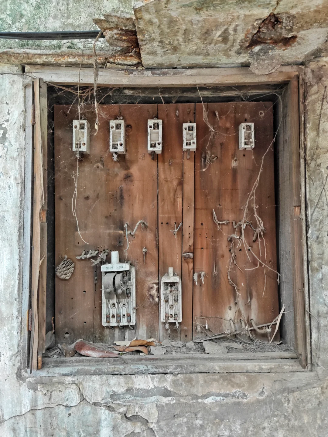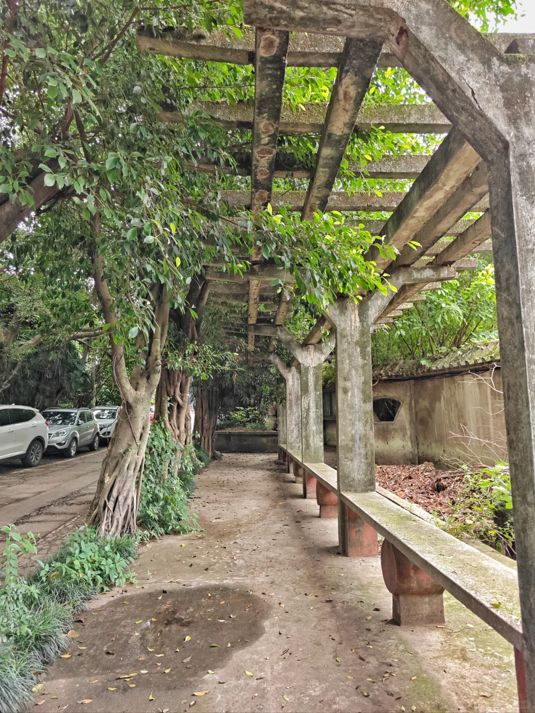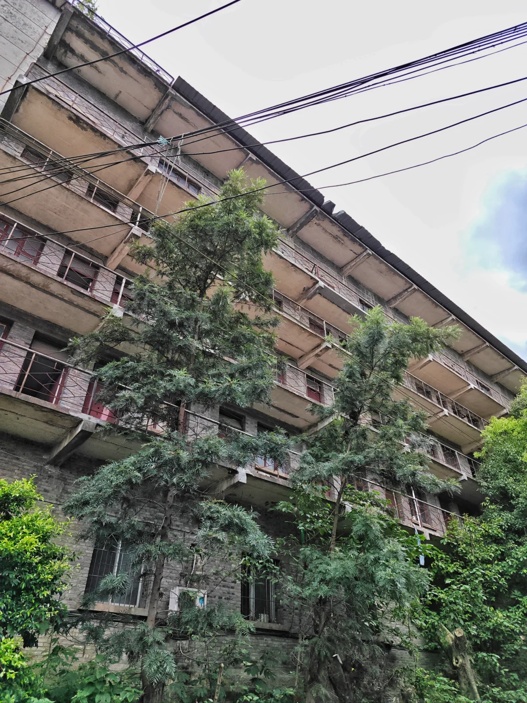 十厂的厂区也是旧房为主,办公楼还是一栋七十年代的筒子楼,而且有一部分都是空置的,可以直接进去,里面有特别古旧的吊顶灯,黑板,以及一些破烂桌椅,很有历史痕迹。走进厂区外面区域,还能看到当年的走廊和亭子,甚至公共厕所都是那种七八十年代的感觉。