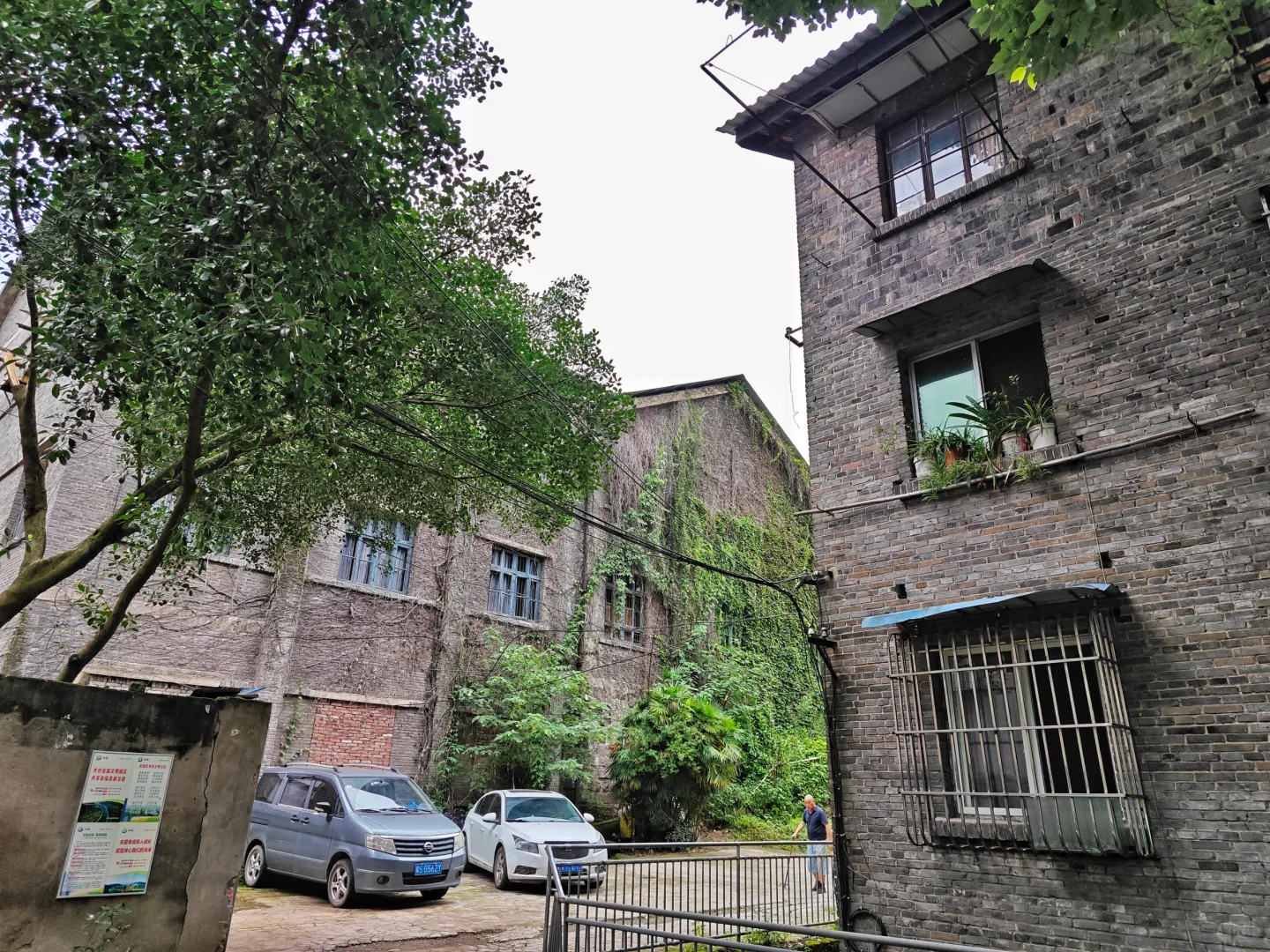 但是再往里面走,就是十厂还在生产的车间,保安也拦着不让进,就没进去了。走出十厂大门,从旁边的乡村小路往前走五分钟,就能看到农田间有一片七十年代左右的楼房,这就是川仪十厂的家属区。紧挨着厂区的另一面,周围环境杂乱,房屋也比较破旧,但是水电气网肯定是四通的。这种郊区厂区家属区,最大的问题还是过于偏僻交通不便的问题。