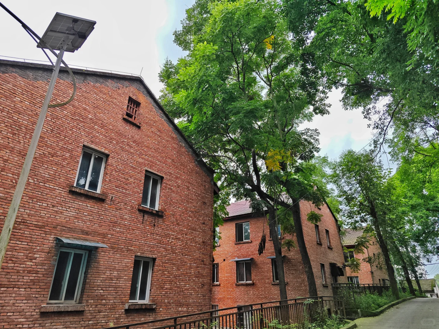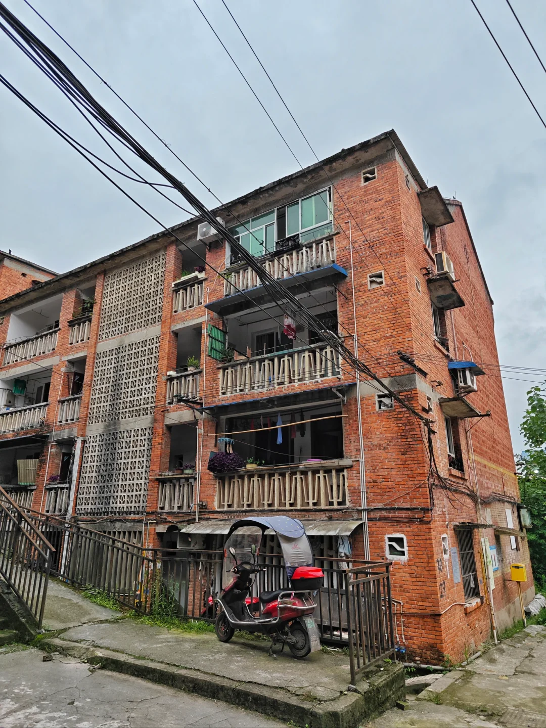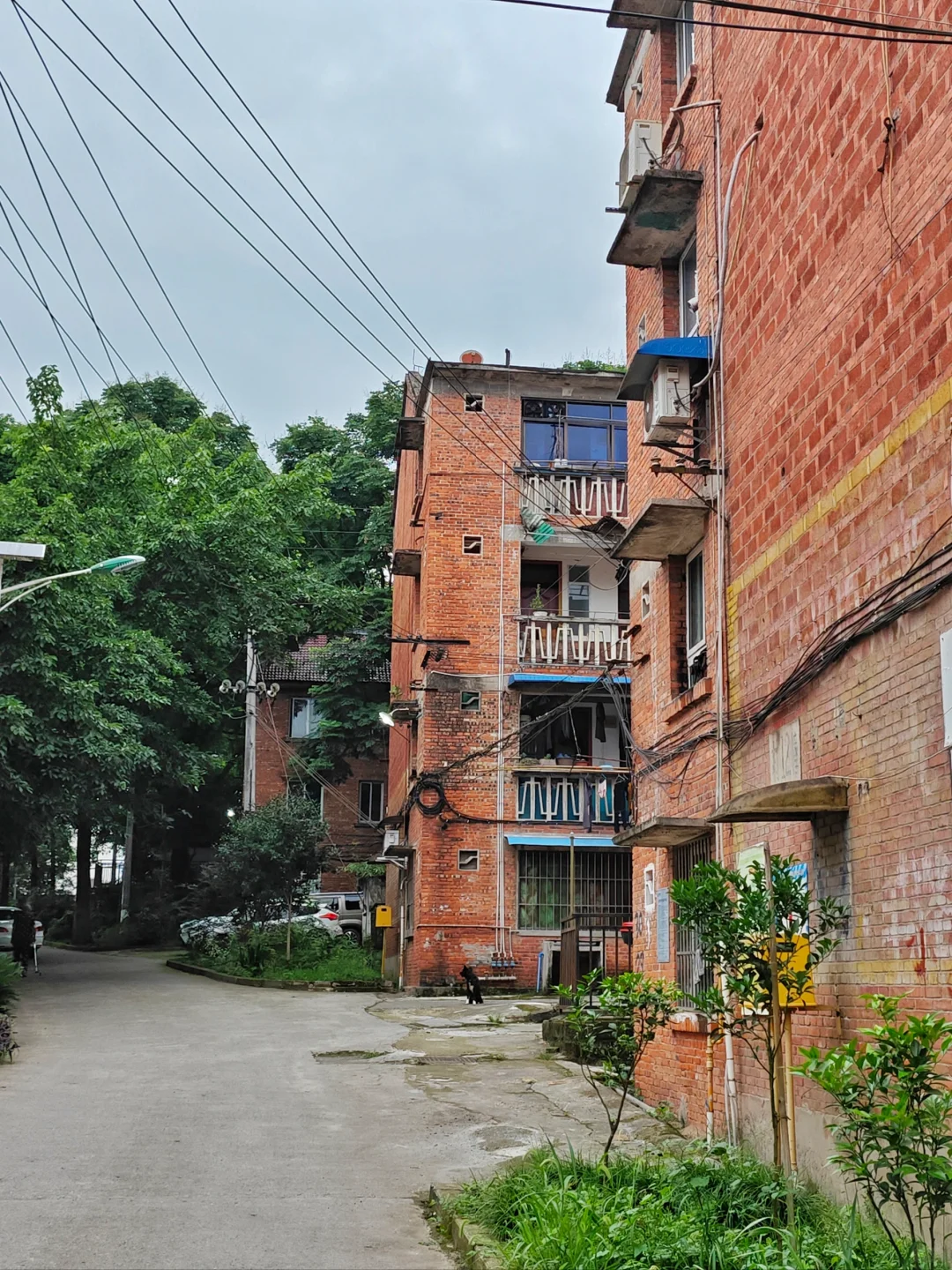 目前,浦陵机器厂厂房租给其他私人小厂生产,家属区还在那里,五十多年时间,很多房屋还基本完好。一排排红砖宿舍楼还在继续使用,里面住着不少退休老职工和家属,以及少量外来租房户。为啥是少量,因为石盘村远离市区,离歇马镇上都要坐公交车二十来分钟,而且公交车班次比较少,愿意到那里租房的人也很少。虽然这些房屋已经使用了超过五十年,但是在老职工们的护理下,还是很有烟火气,社区应该也来维修过,外观也基本干净,外墙上留下的岁月痕迹和窗台上,楼道间晾着的衣服,摆着的花盆,晒着的干菜,都是时间的见证。