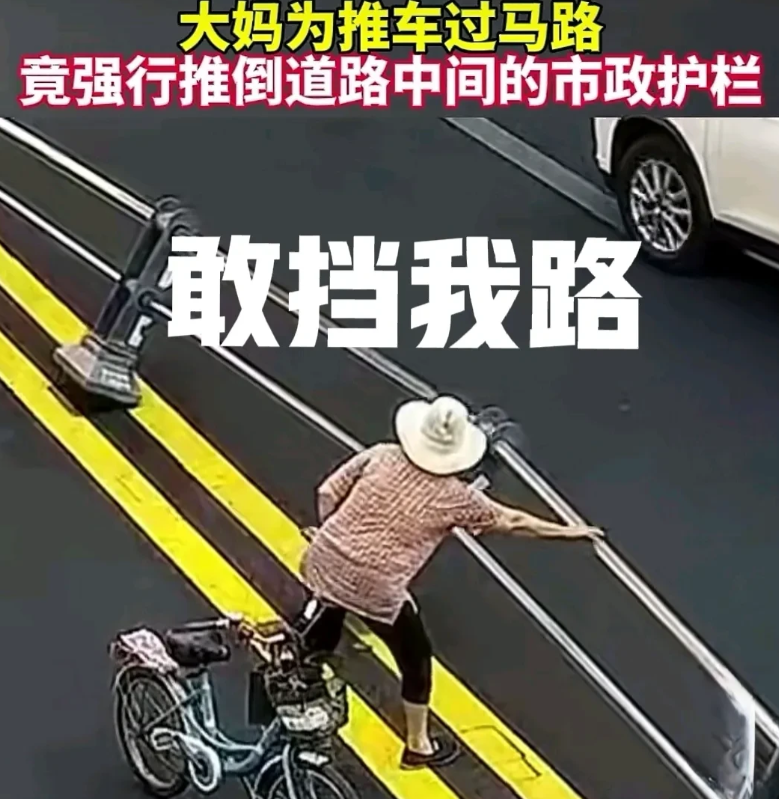四川大妈威武,挡大妈自行车者一切都得让路!9月20日一段绵阳交警公布的视频在网上走火,视频中一位骑着自行车的大妈想过过马路对面,却因路中间的市政隔离护栏挡住了大妈的去路,如果绕行到红绿灯路口,再过马路大妈将要多骑行几百米!绕行大妈是不愿意干的,还是直接将其推到护栏过去比较省事。 也不知道是大妈力气大的原因,还是护栏不太稳固,总之大妈几下就将护栏推倒了一大片。推倒护栏后大妈轻松的推着自行车就穿过了马路,看来是挺省事的。 现在网友们都在争论大妈的行为是老人变坏了?还是坏人变老了?要我说大妈主要是吃的太饱了! 你想一想,大妈一身力气没处使,跳广场舞、骑自行车根本消耗不了大妈的劲。当然了这位大妈一看就是火暴脾气,老伴更是不知道让她推倒多少次了。 我们从视频中看,护栏非常新,中间的双黄实线也是刚刚刷到路面上去的,从这两点就知道,这条路之前中间并没有隔离带,是近期才安装上去的。这对过去骑着自行车随便横穿马路的大妈来说,带来了多大的不方便?有关部门在这条马路中间安装隔离护栏和大妈没商量吧? 这也可能是大妈推倒护栏的原因之一呀,不得不说这位四川绵阳的大妈威武!只是不知道这样损市政交通设施会有什么处罚?根据《道安法》相关规定,故意损毁、移动、涂改交通设施造成危害后果,尚不构成犯罪的可以处15日以下拘留、罚款1000元。从现在的情况来看,大妈推倒护栏的行为并没有造成大的危害后果,判刑是够不上的。但是可能要被罚款1000元,恐怕这样的处罚也对大妈没什么影响,大妈有得是退休金。如果大妈被拘留15天,这期间让大妈的力气往哪使?这才是大妈应该思考的。
