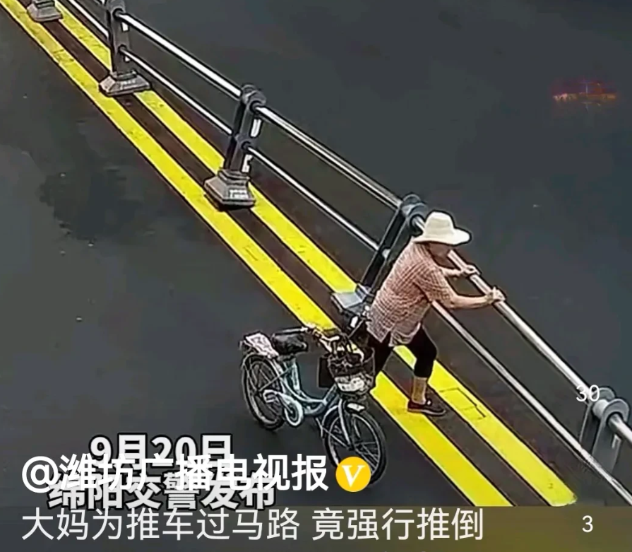 四川大妈威武,挡大妈自行车者一切都得让路!9月20日一段绵阳交警公布的视频在网上