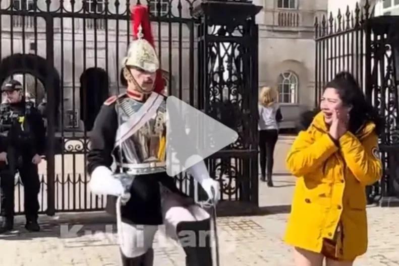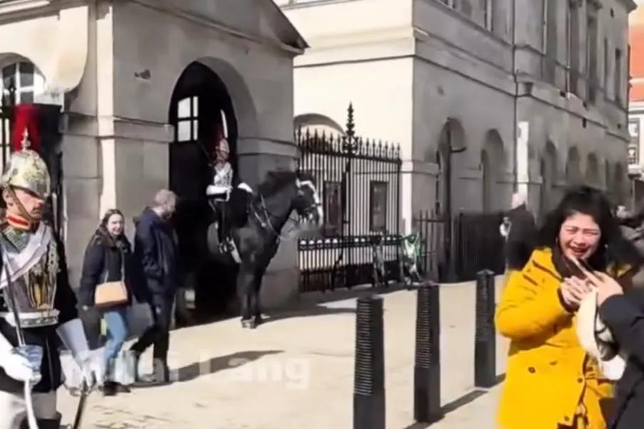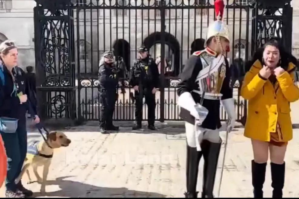 女游客贴近英国皇家近卫队的卫兵合影,被大声喝斥吓得魂飞魄散…引发网友热议! 有些人就是这样,尤其出了国,各种拍照,一个卫兵有什么照的,还摆出亲密的姿势和表情! 丢中国人的脸!(网图侵删)
