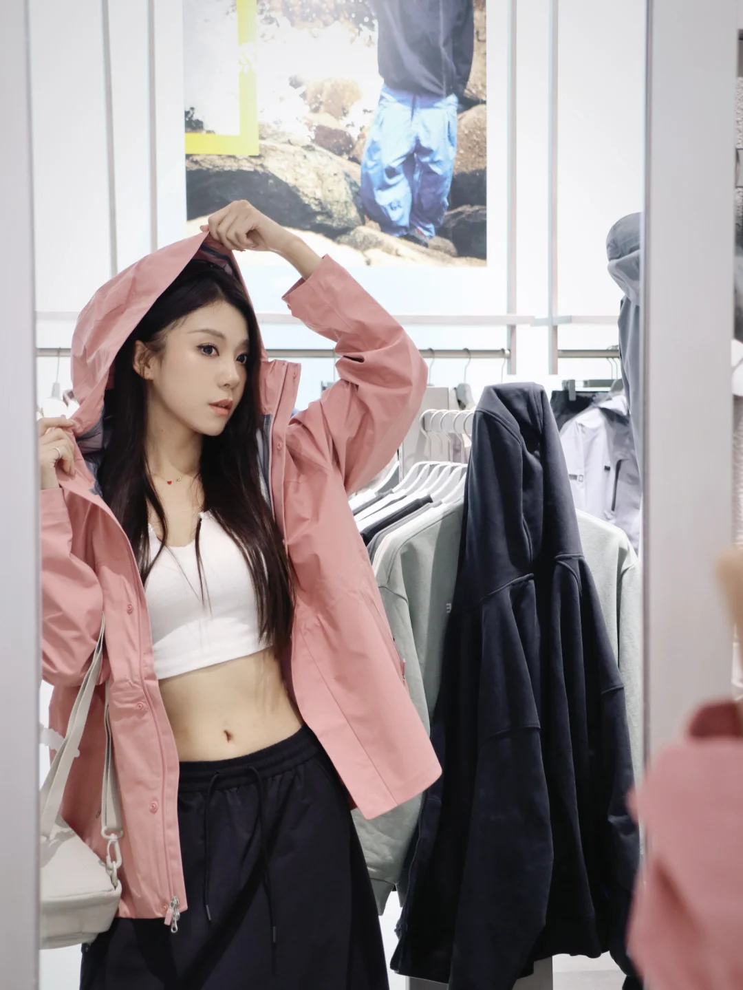 三合一的冲锋外套搭配城市机能风长裙