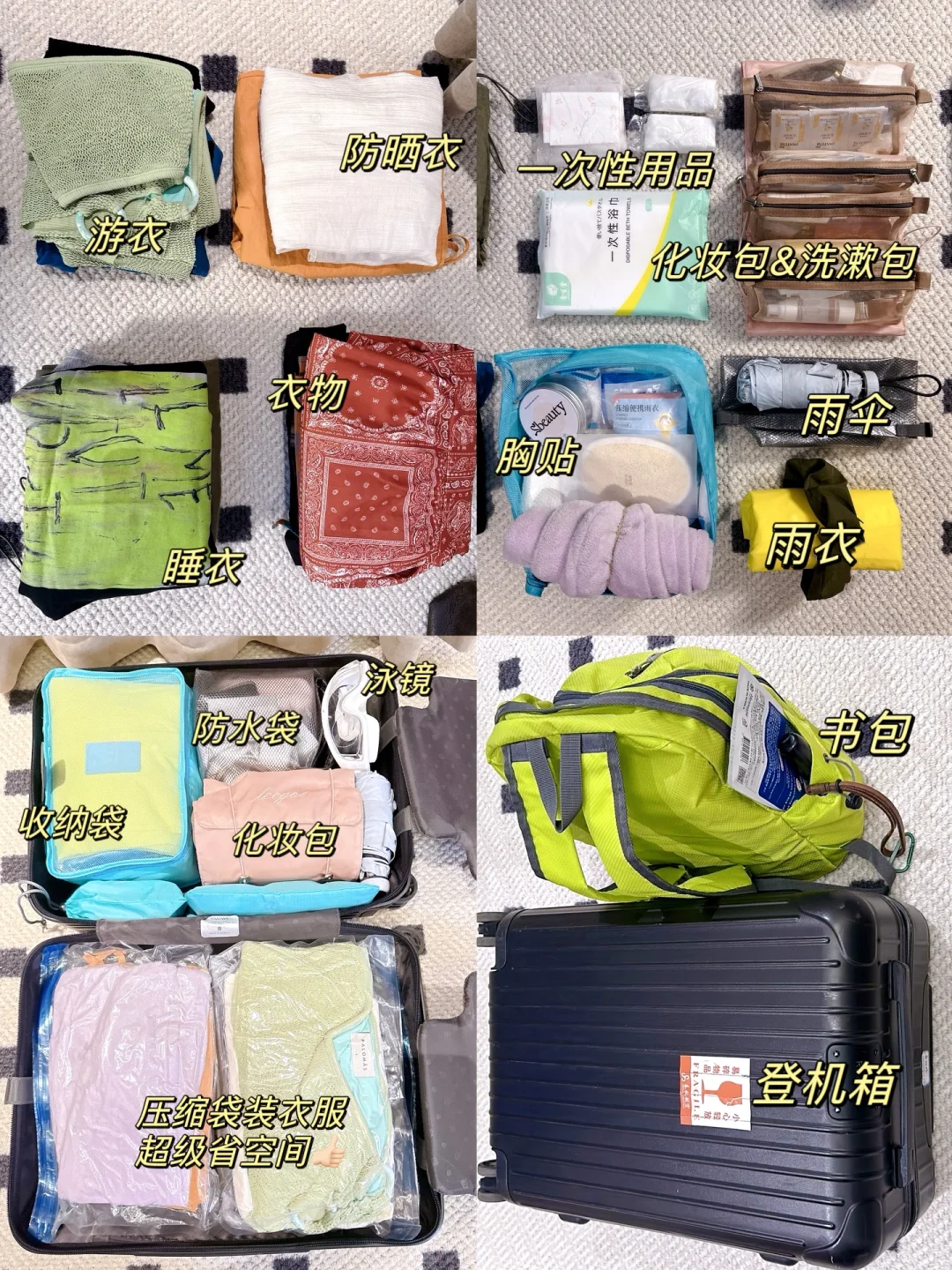 🔸衣物(根据行程搭配好,用压缩袋收纳超省空间)