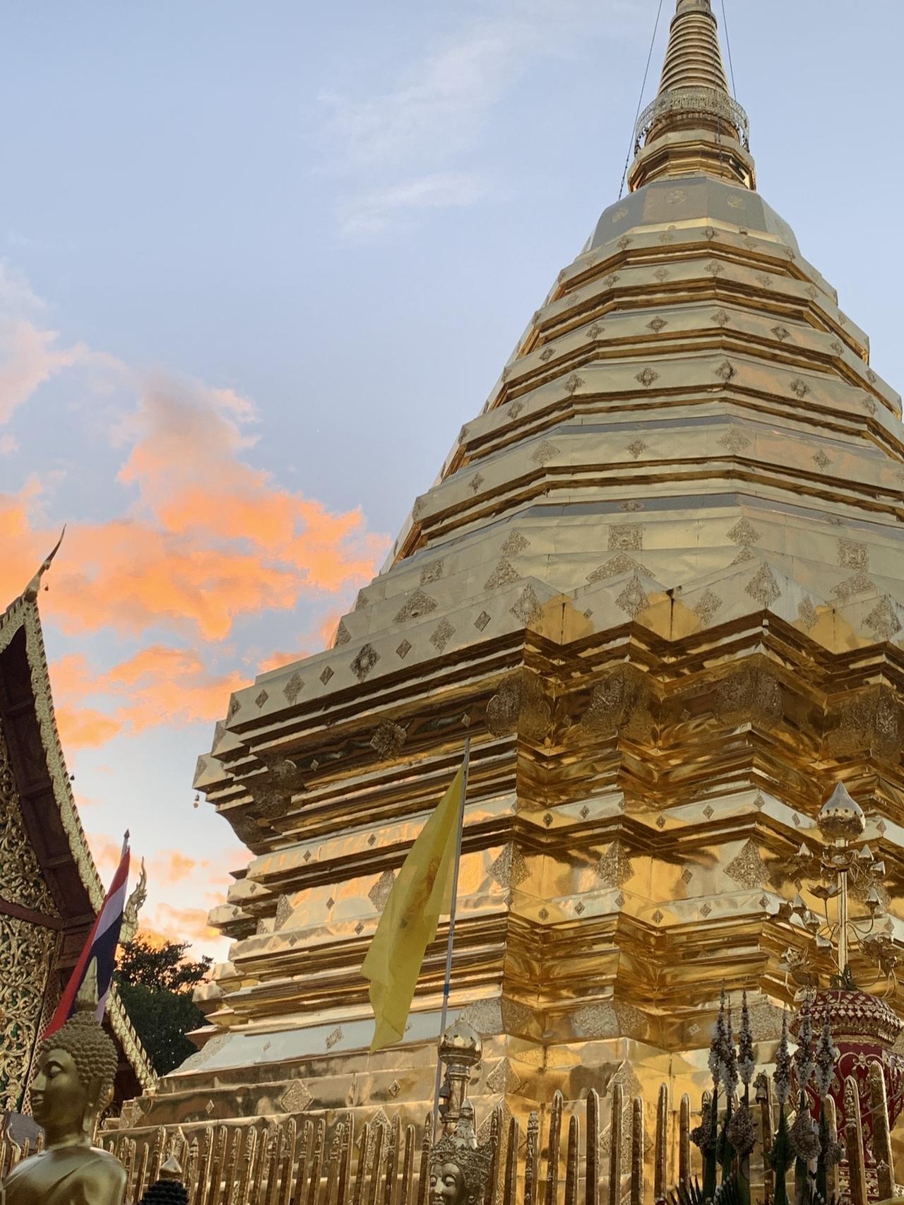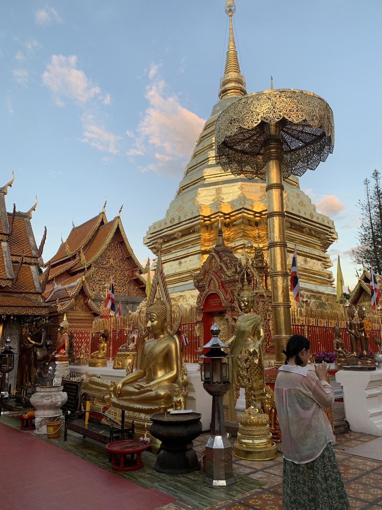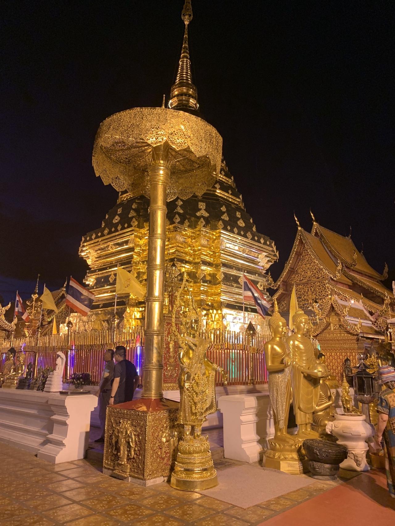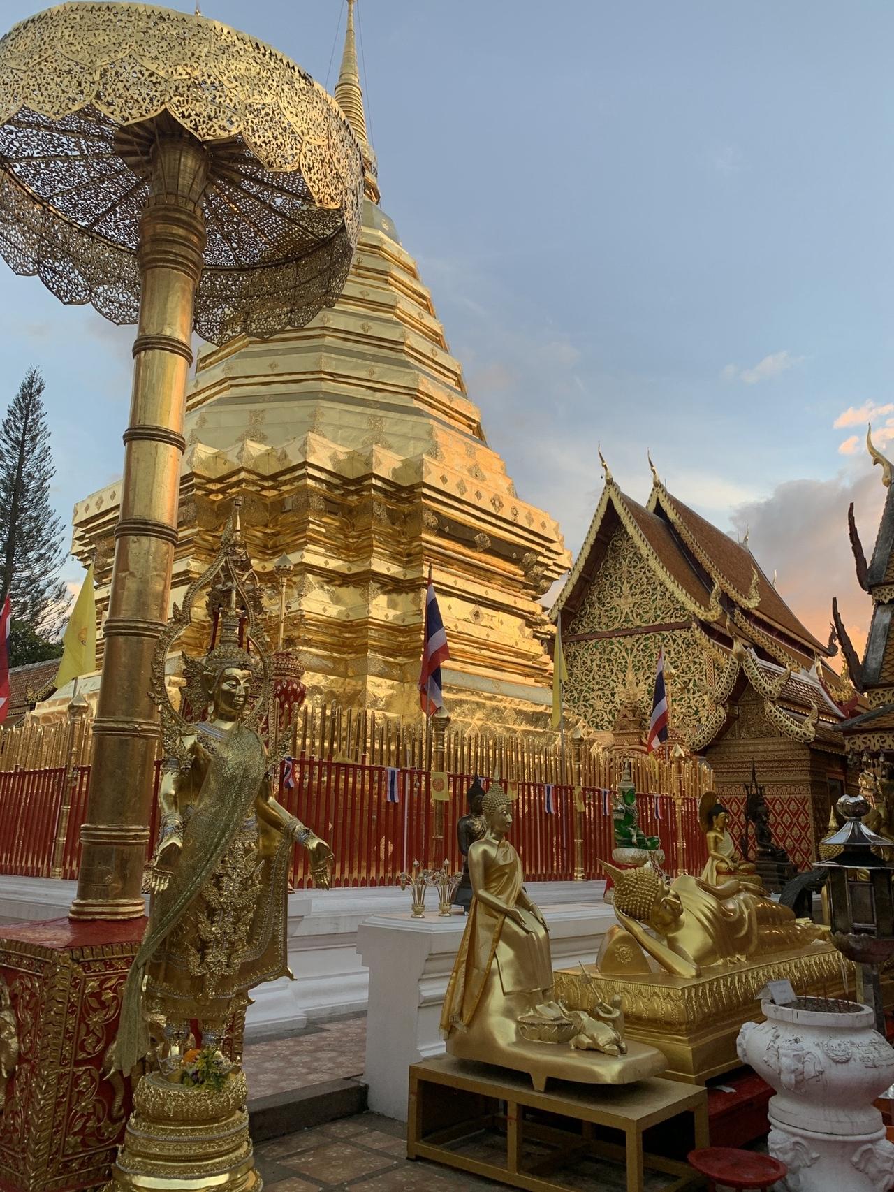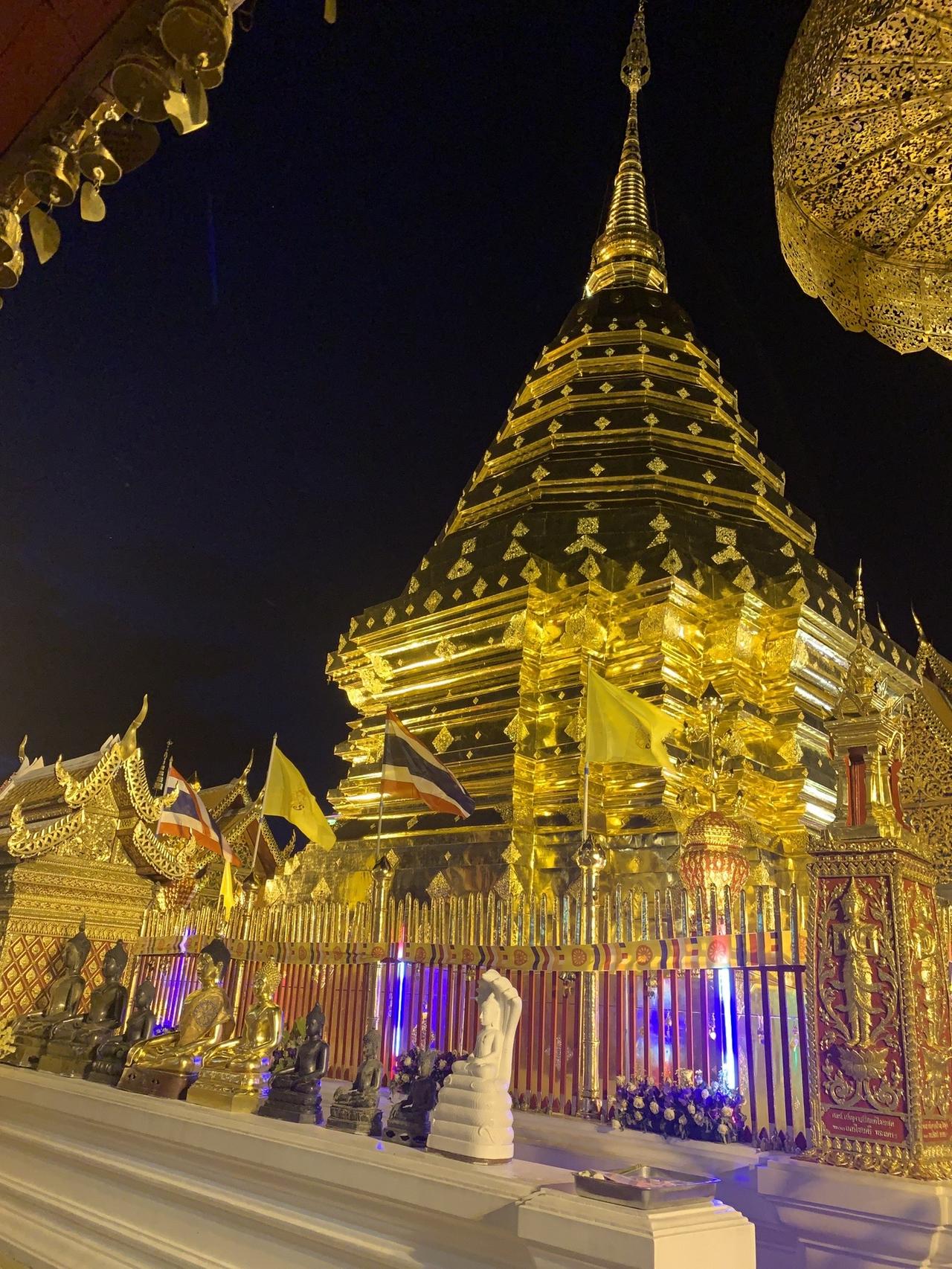 泰国清迈双龙寺,建在山顶上的寺庙,一座用了240公斤黄金打造的寺庙。金碧辉煌,耀