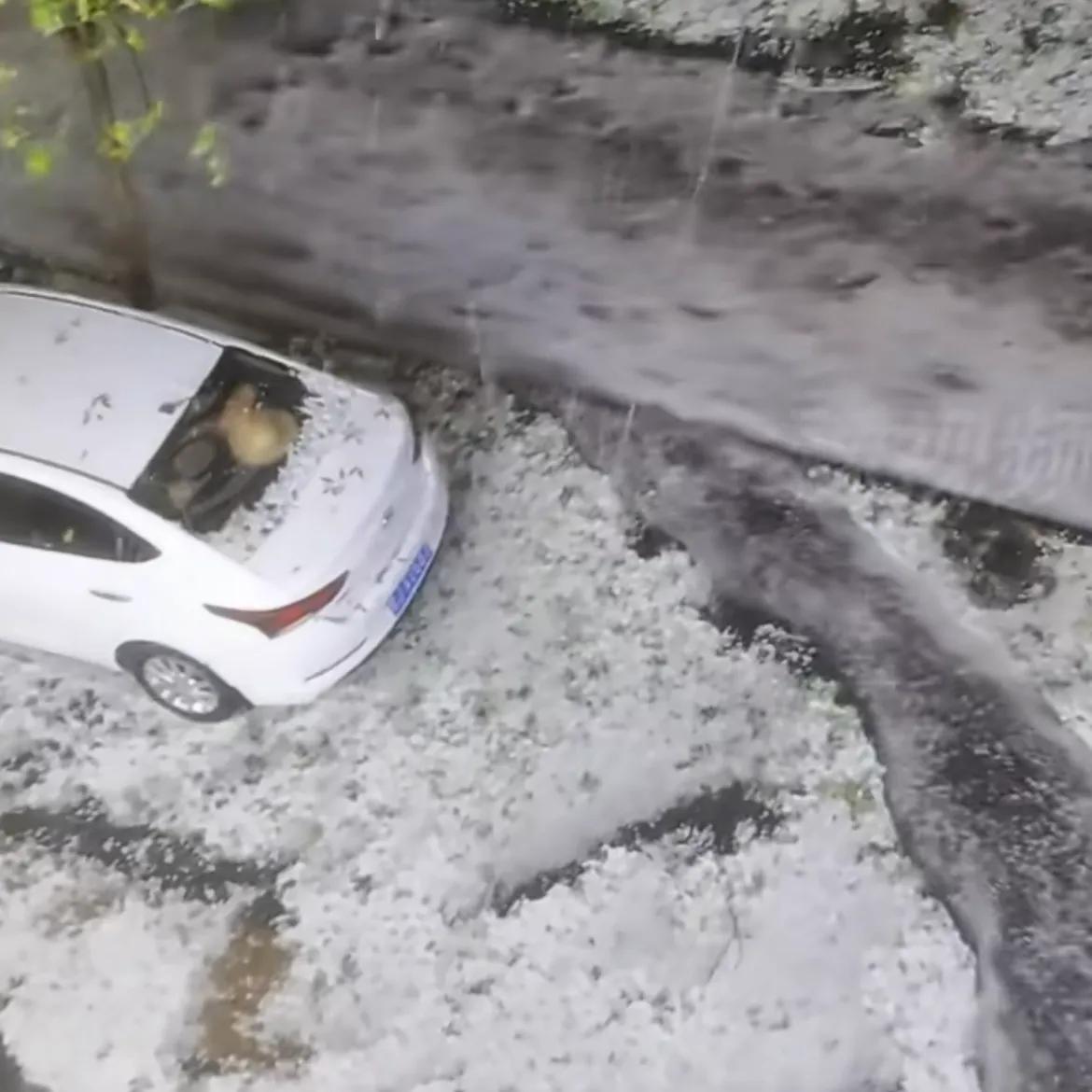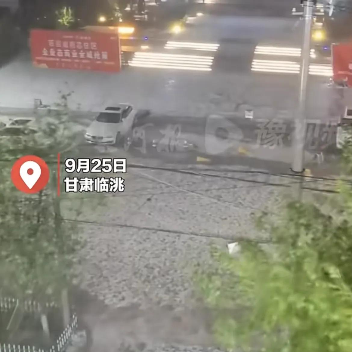 9月25日,甘肃临洮突降冰雹,石子般大小顷刻间落满街道,马路瞬间变成“冰河”