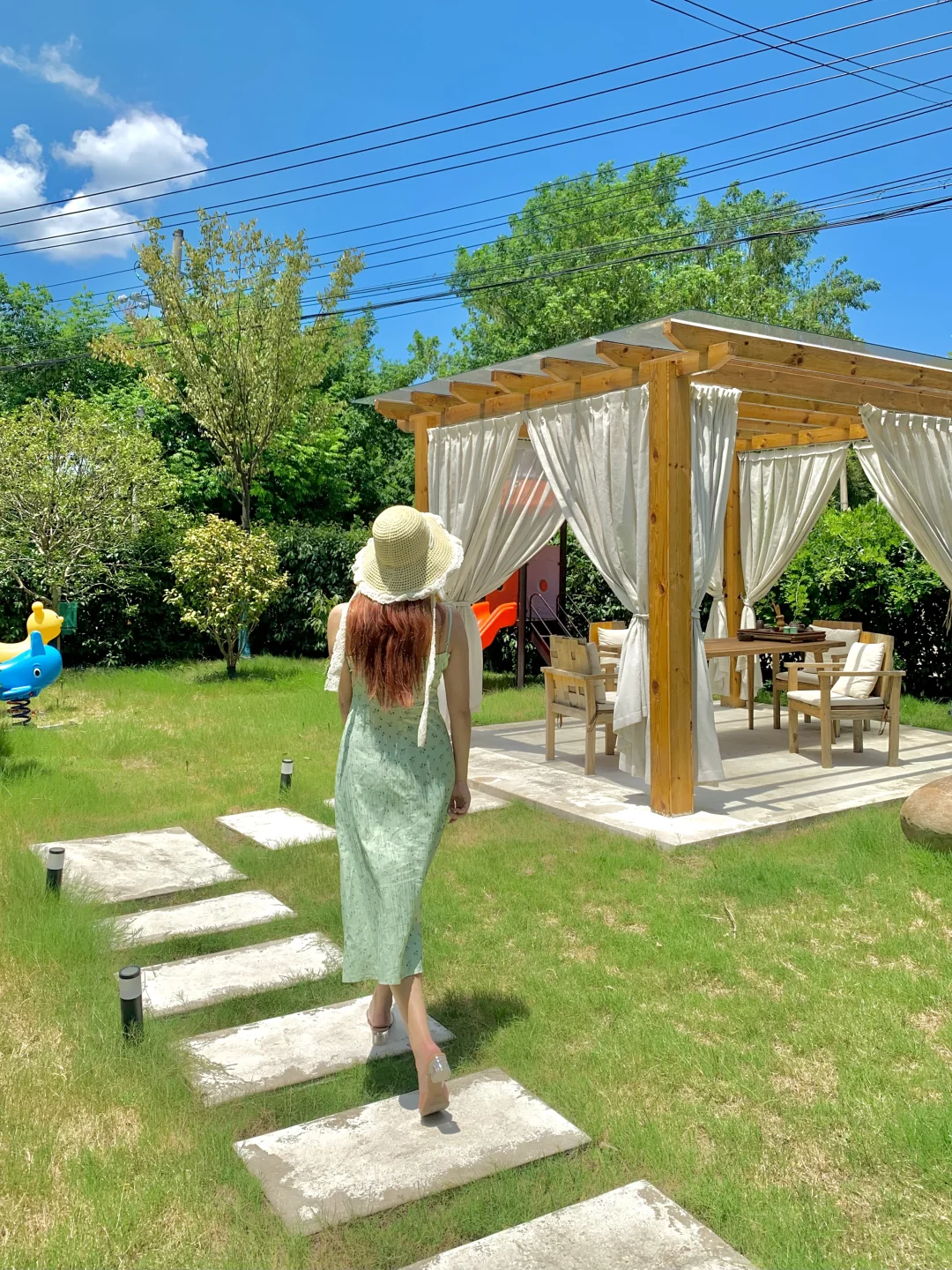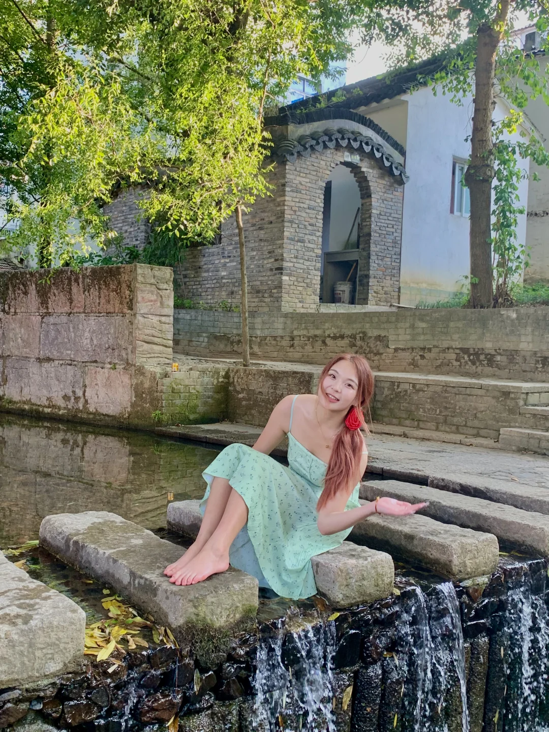 门口就有潺潺溪水可以玩