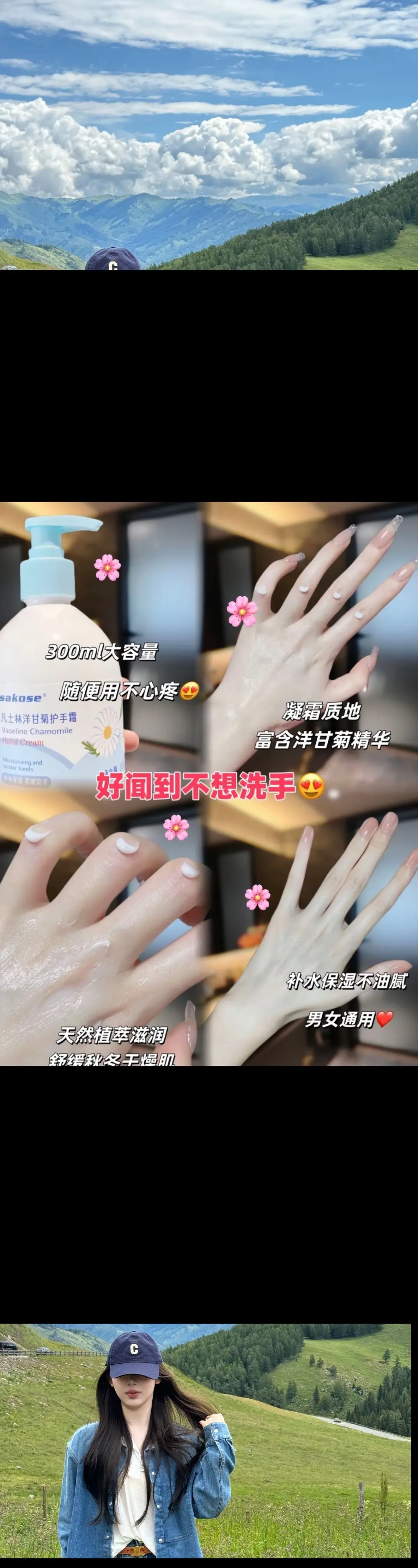 天冷了,经常做家务的姐妹可以用这款凡士林洋甘菊护手霜 ,补水保湿,滋润肌肤,不油腻!大容量,随便用不心疼!